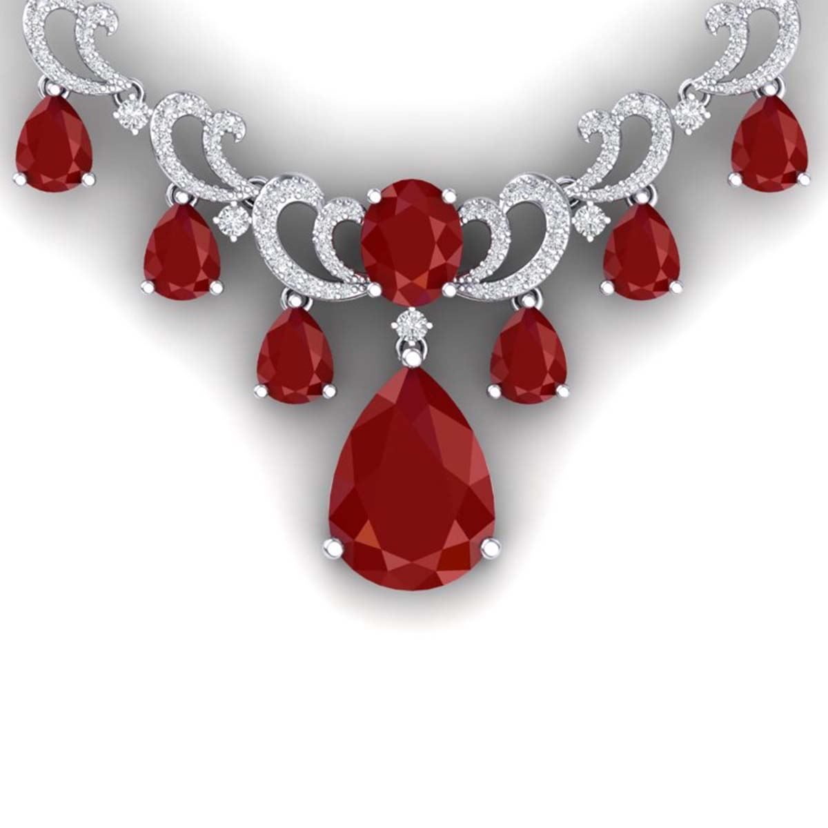36.85 ctw Ruby & VS Diamond Necklace 18K White Gold