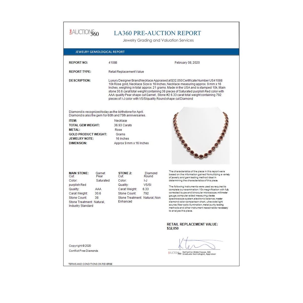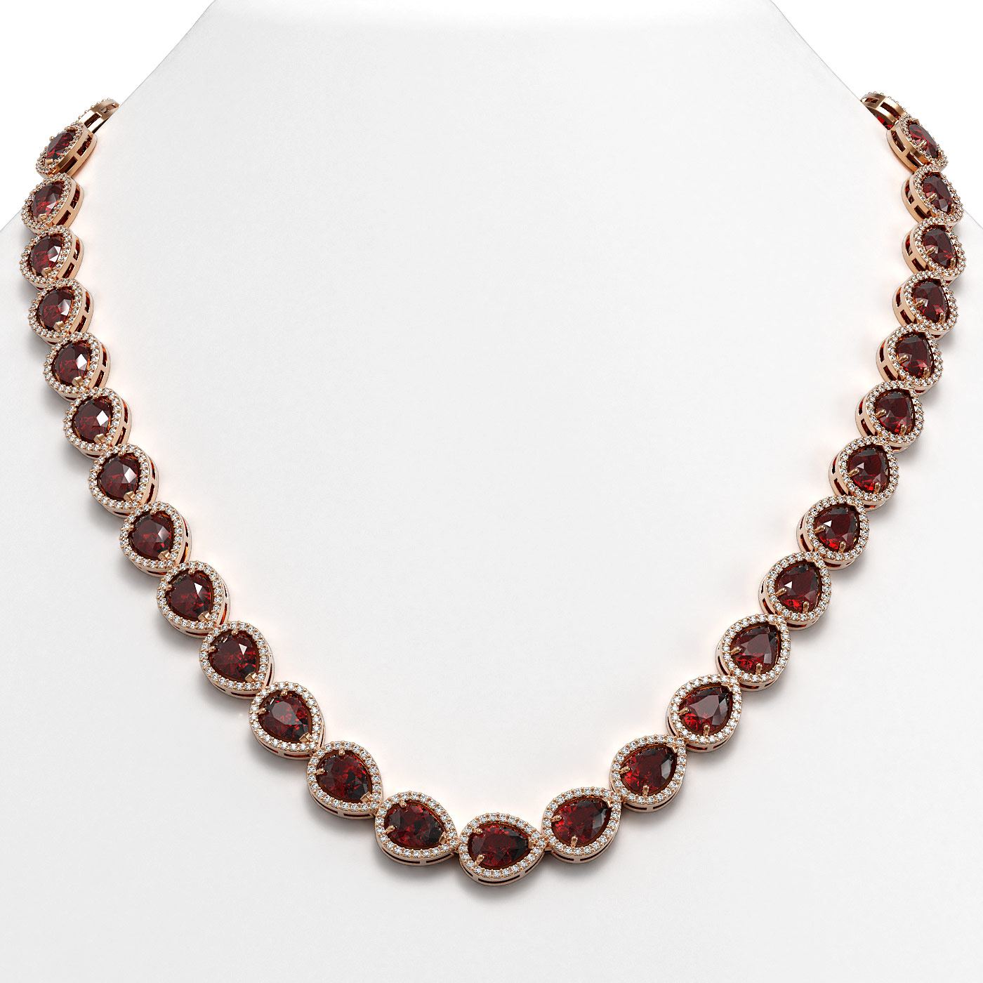 REF-582A8N - SKU: 41088 ---- 36.93 ctw Garnet & Diamond Micro Pave Halo Necklace 10k Rose Gold