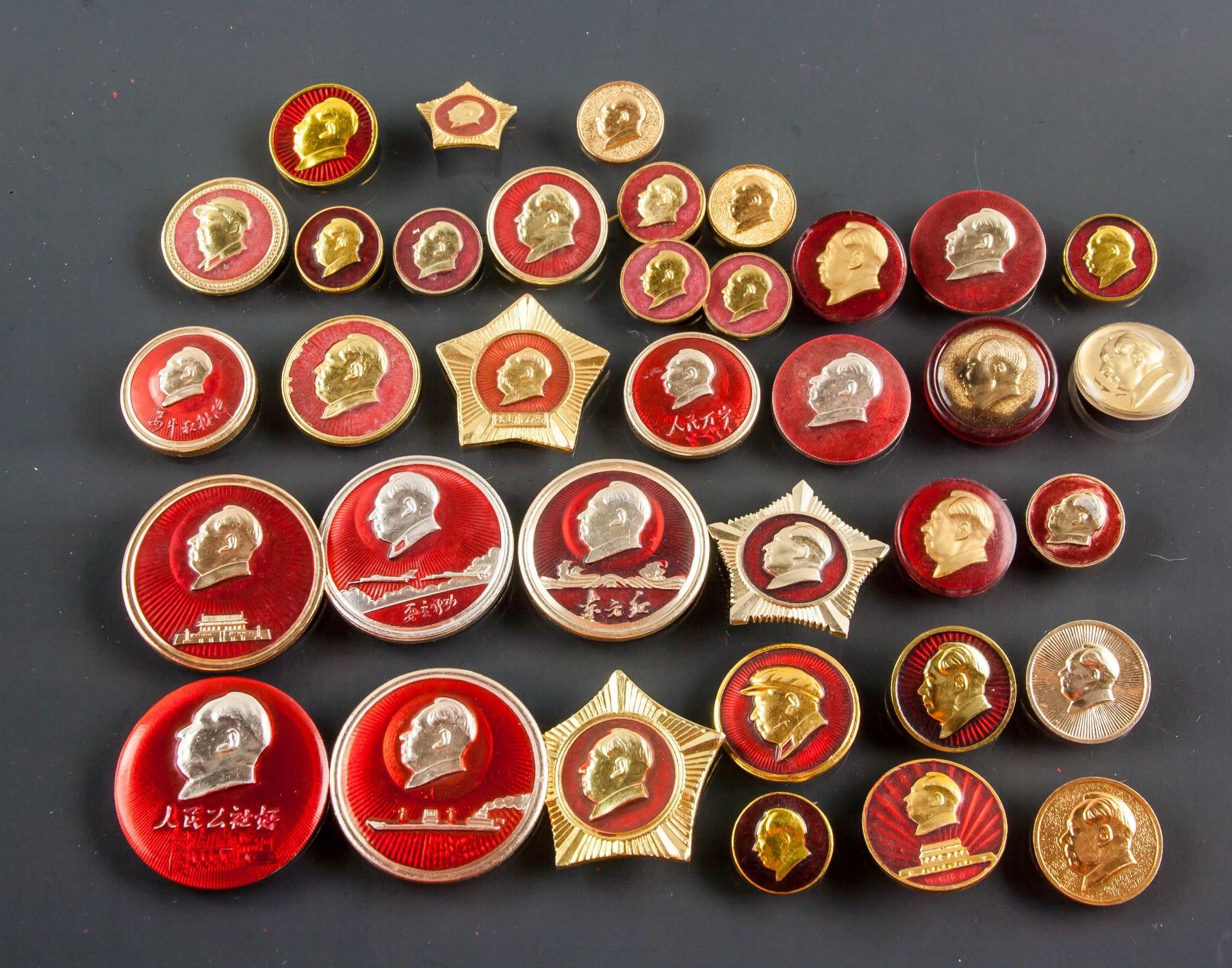 36 assorted Chinese Chairman Mao medals; of various design and size; 1.5 cm x 5 cm, 30 grams total