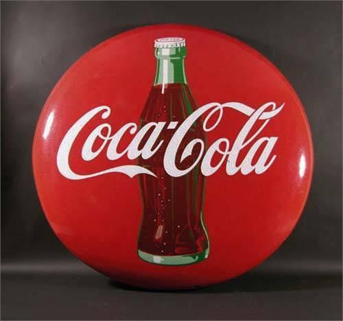 36" Coke Button with Bottle porcelain, small damage to bottom right otherwise ex. cond.