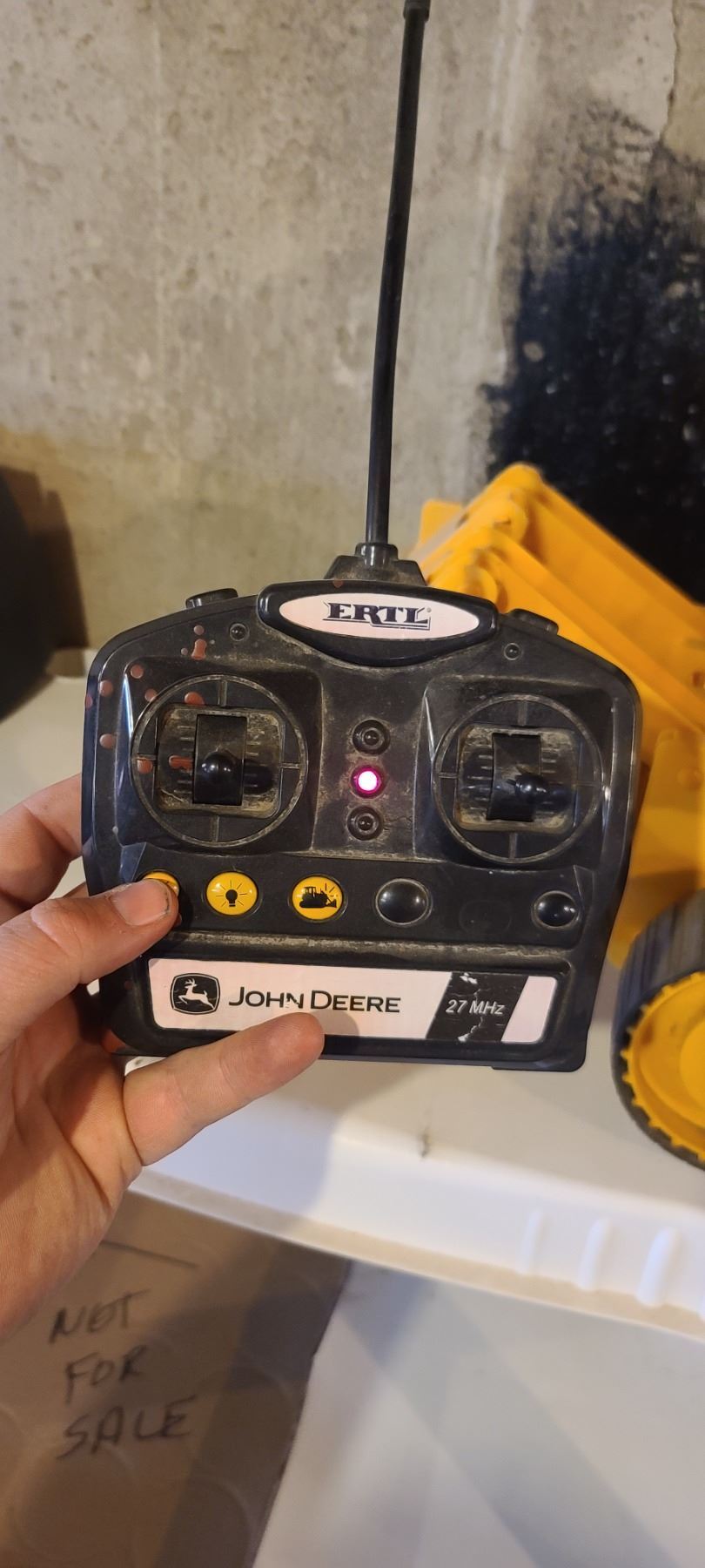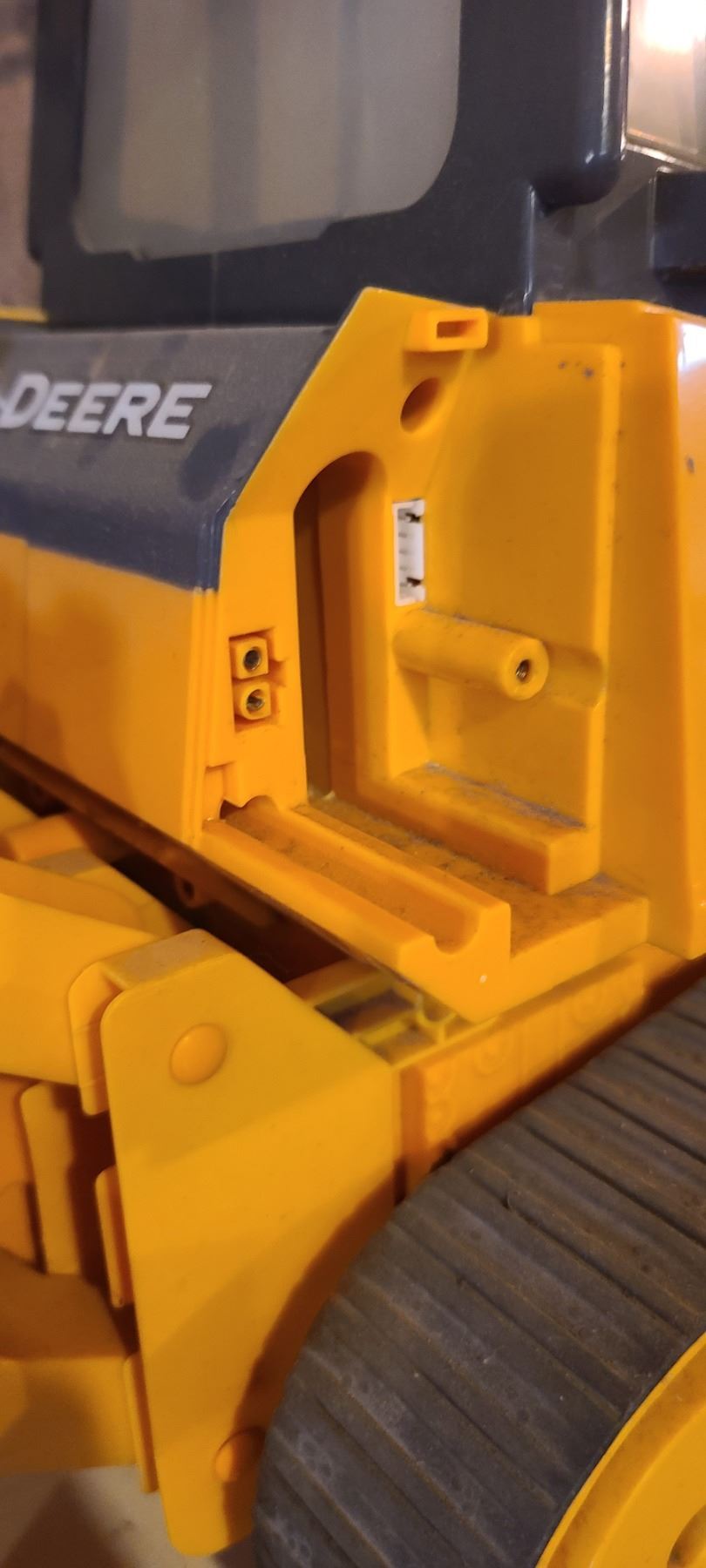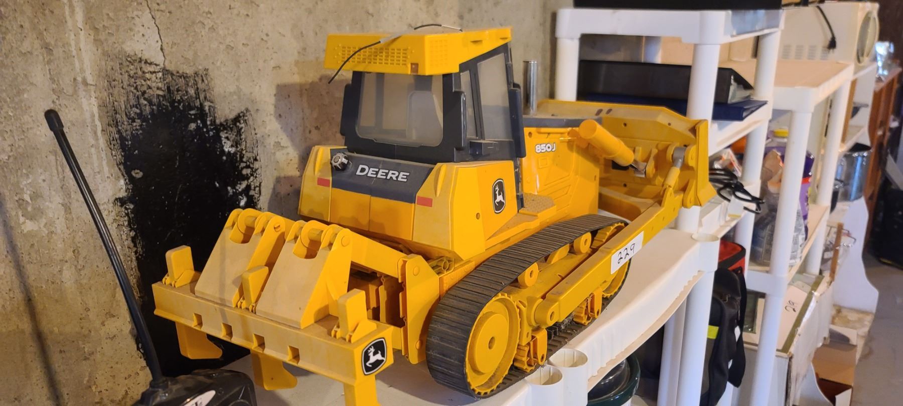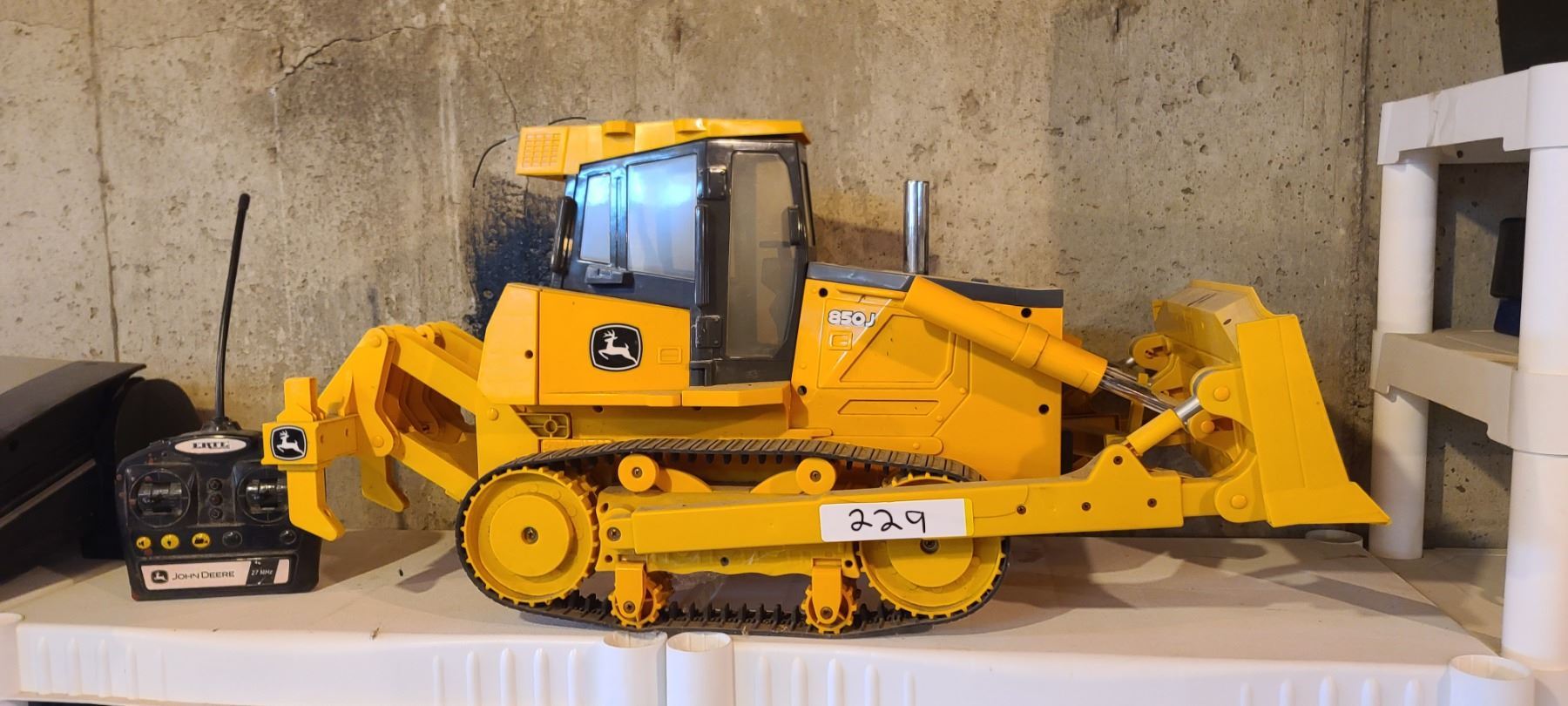 36 INCH PLASTIC JD 850J REMOTE CONTROLLED DOZER C/W CHARGER, REMOTE CONTROL, BATTERY MISSING