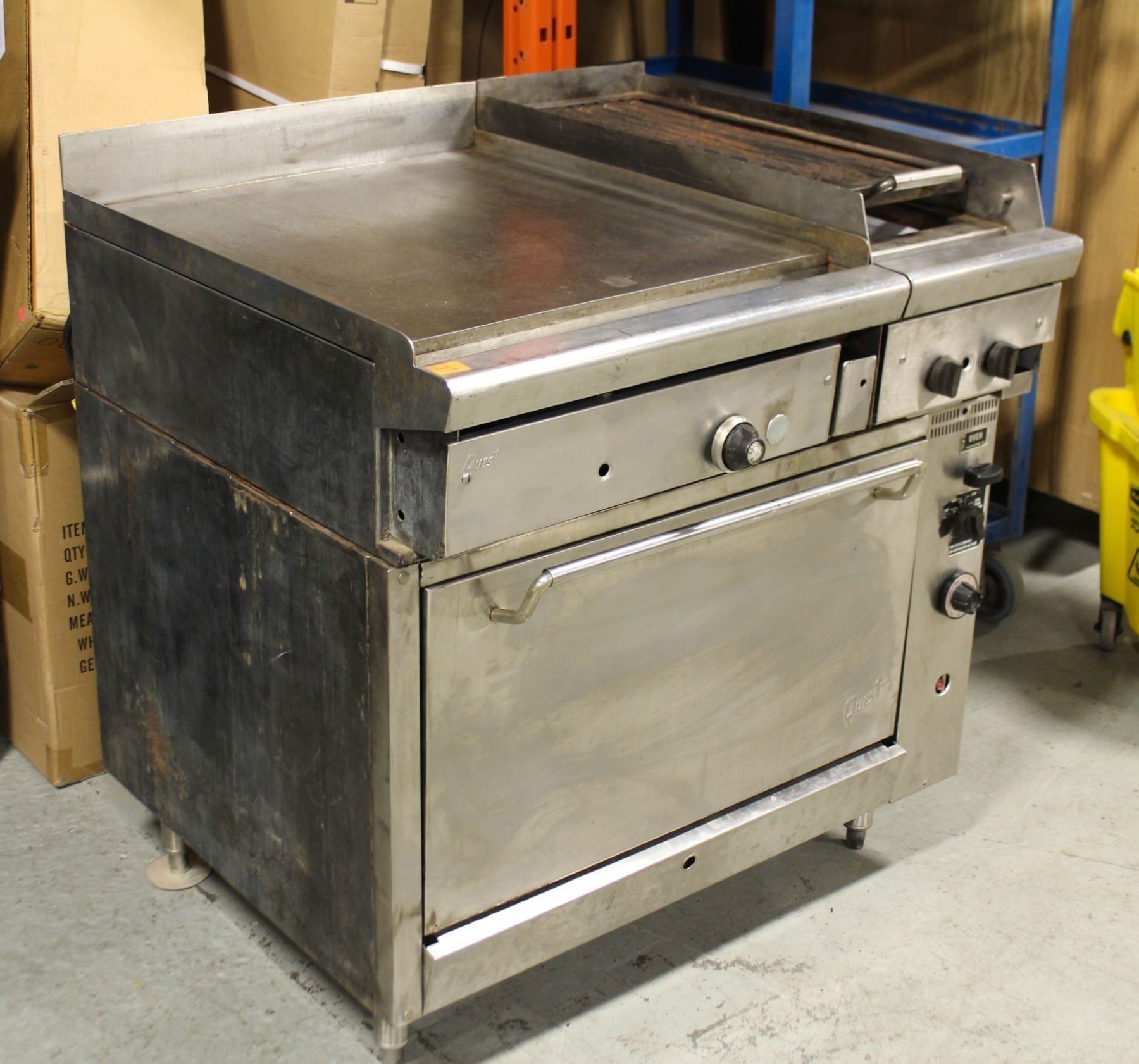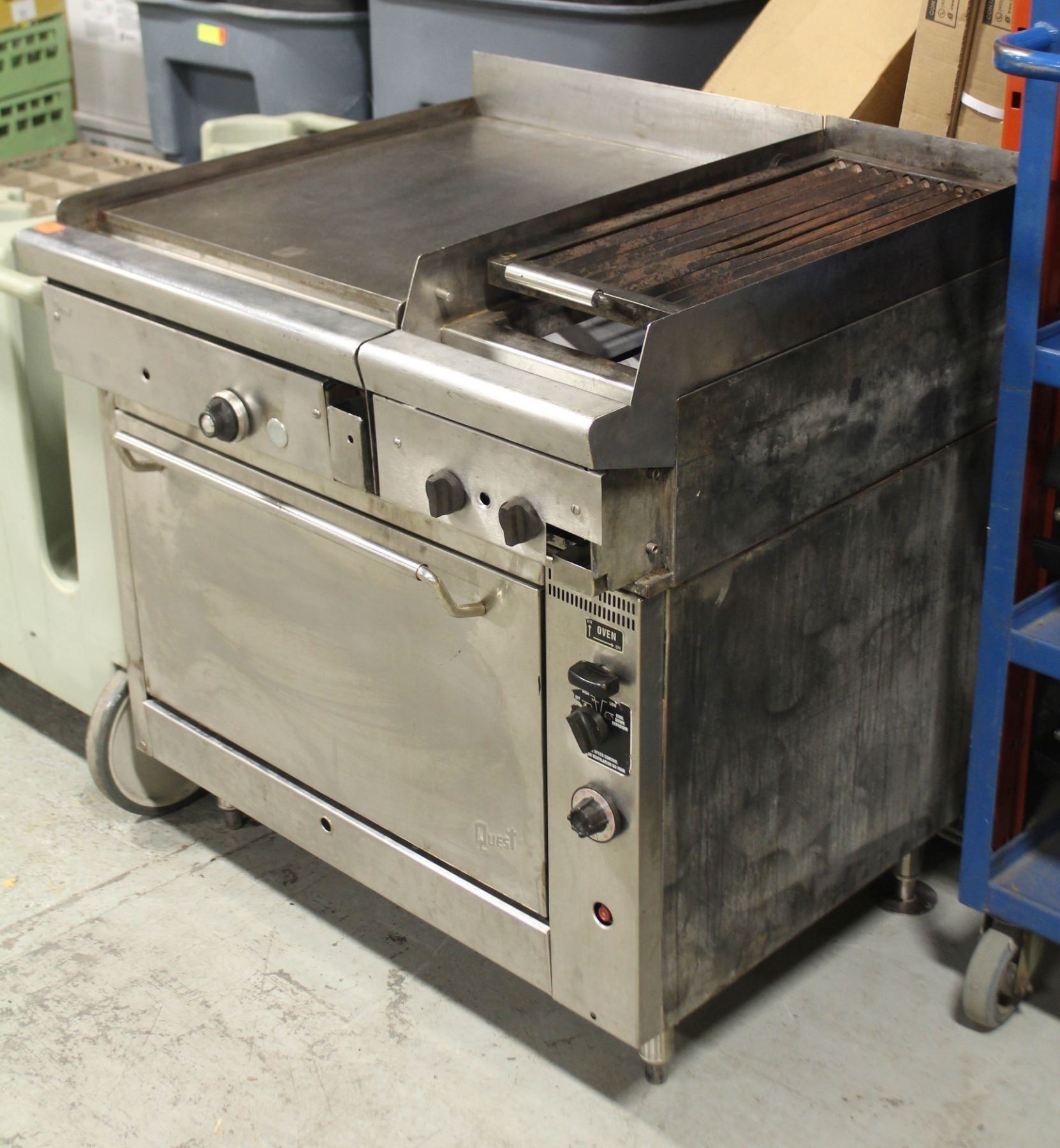 24" GRIDDLE, 12" CHARBROILER. MODEL: QGR-100000. 36" X 31" X 36" **ALL ITEMS MUST BE REMOVED BY 5PM MONDAY, SEPTEMBER 12TH, 2022. ALL REMAINING ITEMS WILL BE SUBJECT TO A $6.00 PER DAY STORAGE CHARGE. ANY ITEMS REMAINING AFTER MONDAY, SEPTEMBER 26TH, 2022 WILL BE CONSIDERED FORFEITED. NO REFUNDS WILL BE ISSUED FOR FORFEITED ITEMS.** TO SCHEDULE A PICK UP APPOINTMENT CLICK HERE