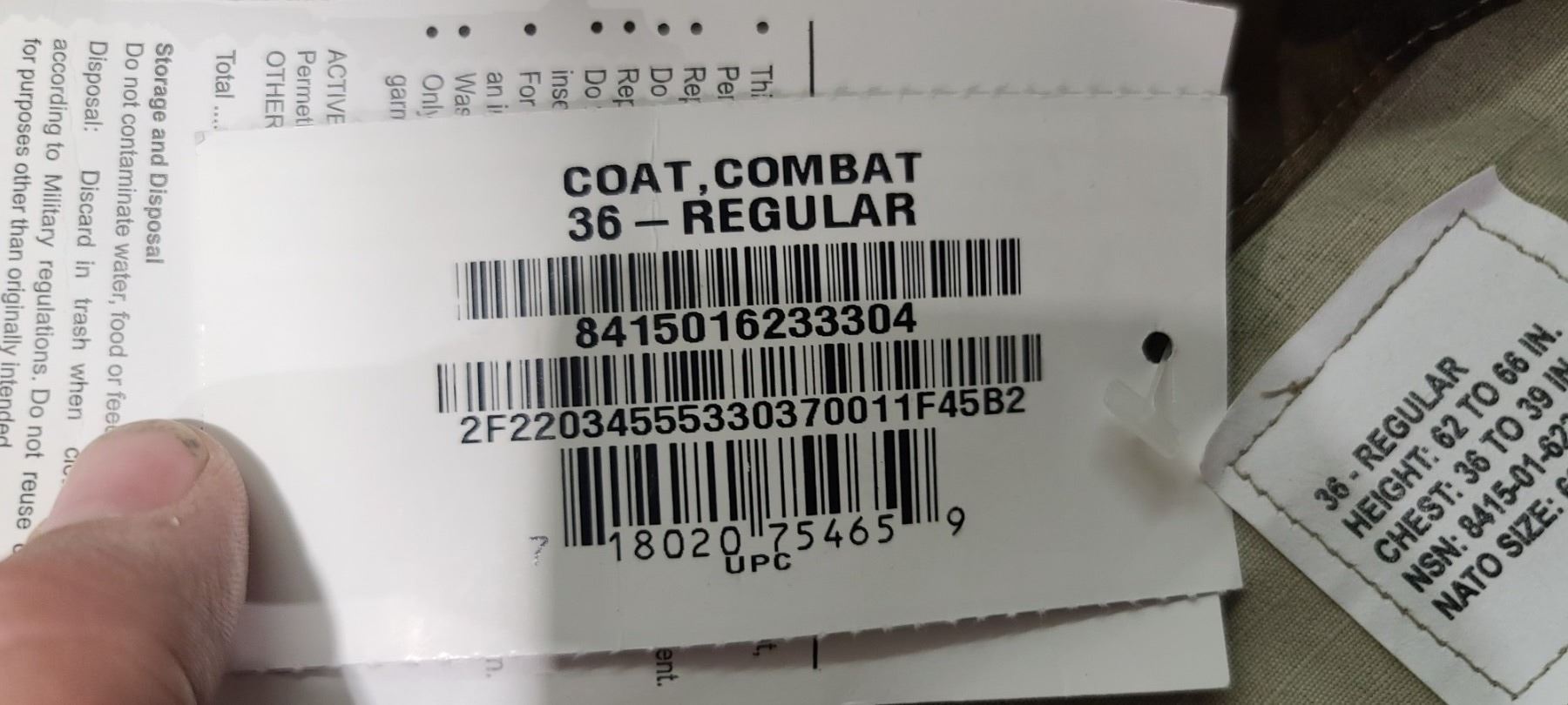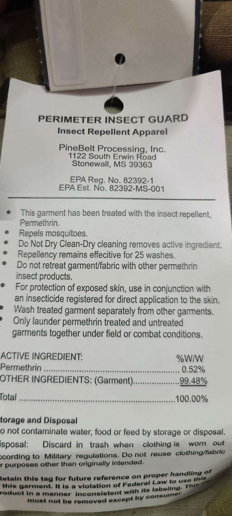 36-REGULAR COMBAT COAT INSECT REPELLENT APPAREL
