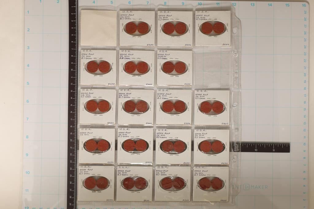 TOKENS. MADE FROM WOOD PULP, ALL OFF CENTER ERRORS