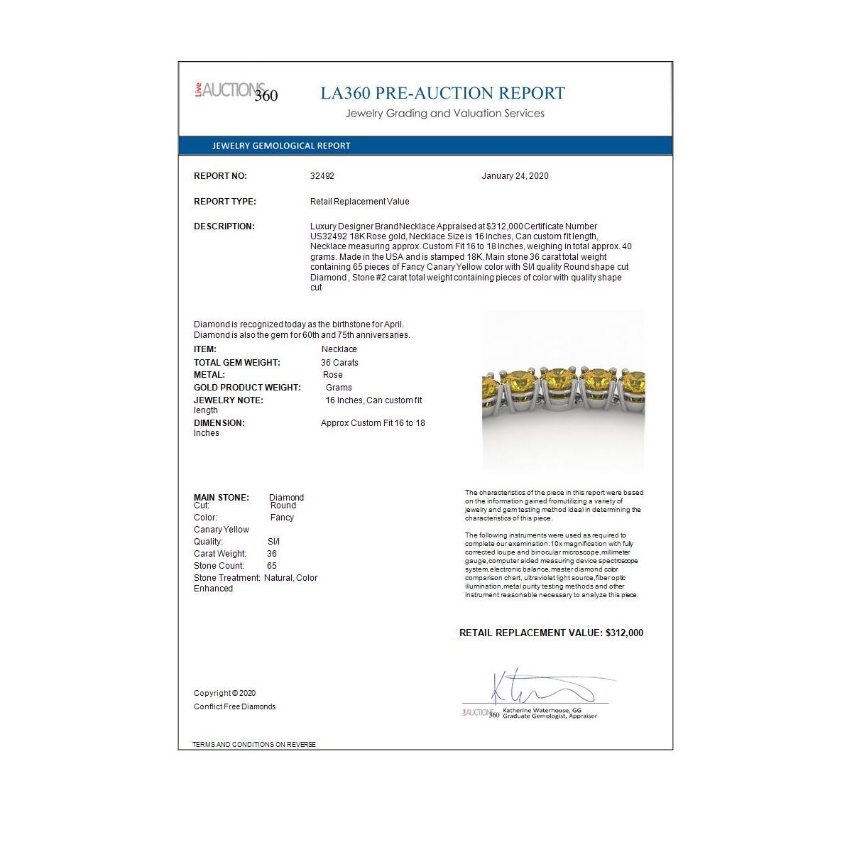 REF-5850A2N - SKU: 32492 ---- 36 ctw Certified Fancy Yellow SI/I Diamond Necklace 18K Rose Gold