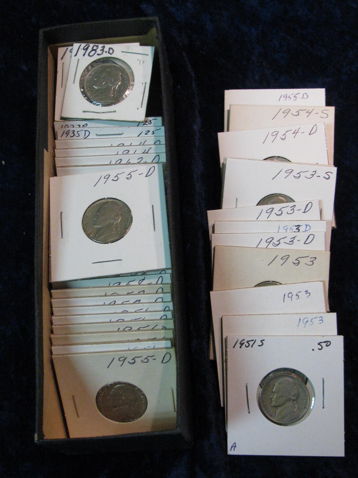 360. Dealer Stock Box containing (50) 1935-86 U.S. Buffalo and Jefferson Nickels..