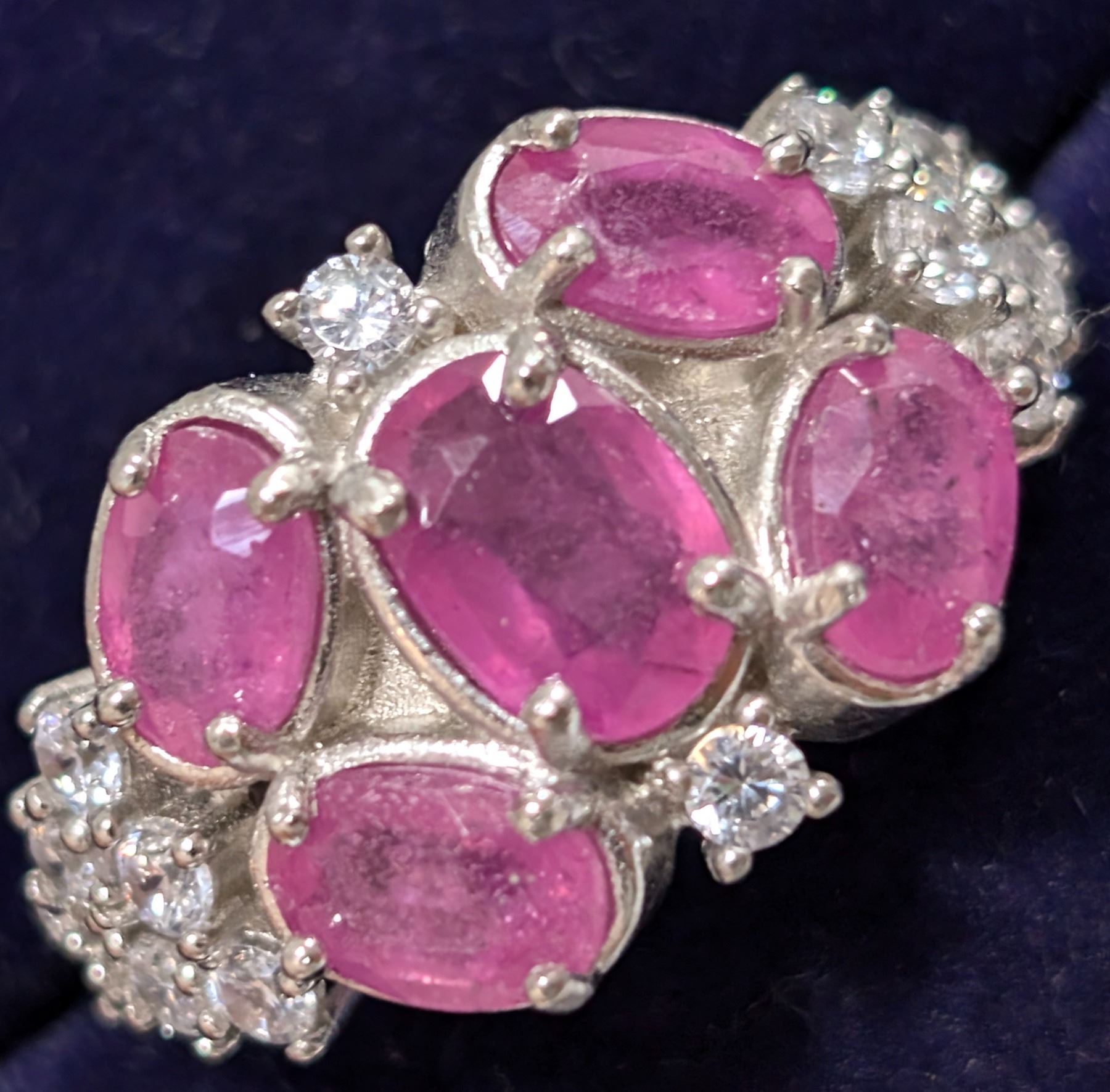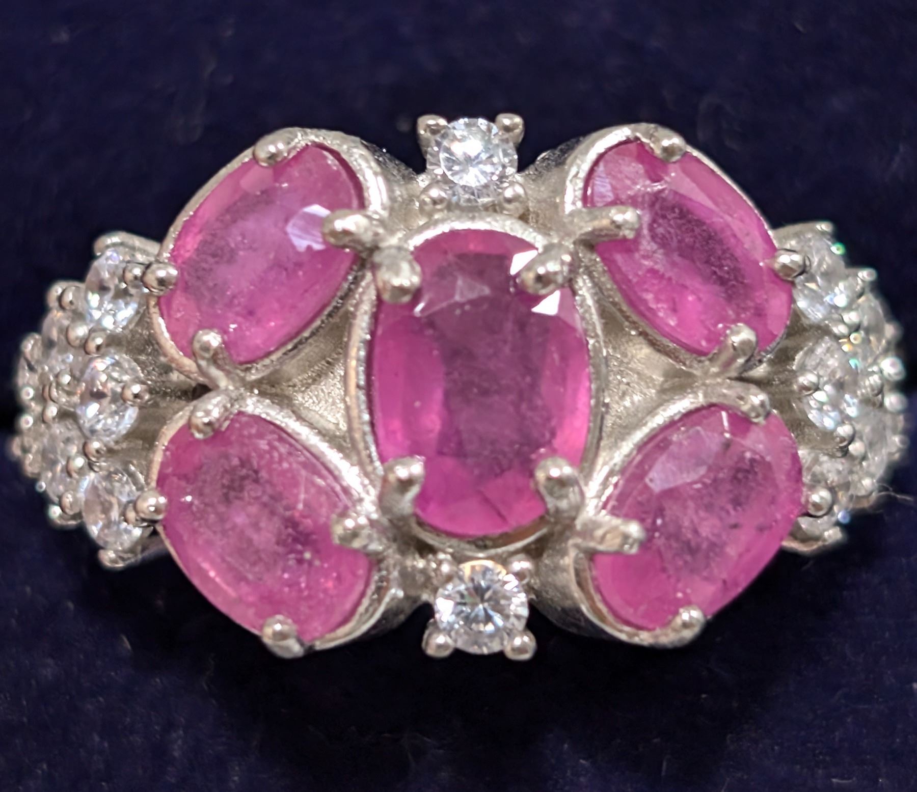 Si(5.44G),Ruby+Cz Match W/ Earring&Pendant Ring (~Size 0) (~length 0 inches), Suggested Retail Value $360