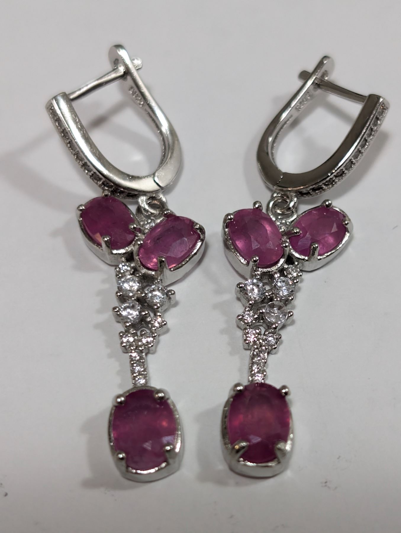 Si(5.63G),Ruby+Cz Earrings (~Size 0) (~length 0 inches), Suggested Retail Value $360