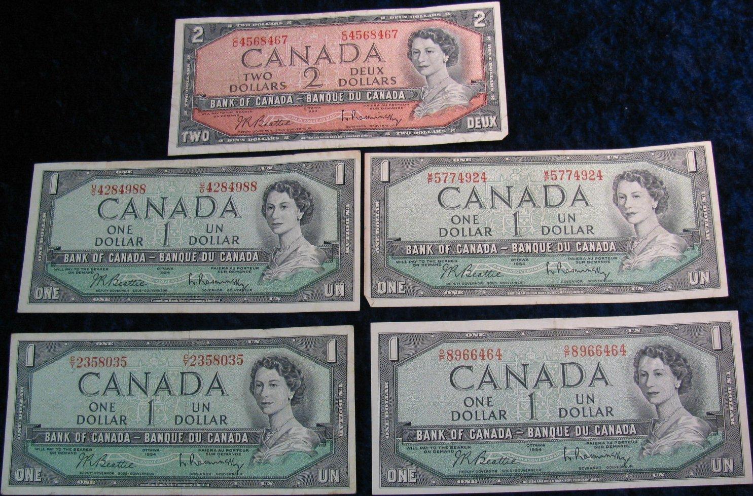362. Canada Series 1954 (3) $1. and (1) $2. Notes.
