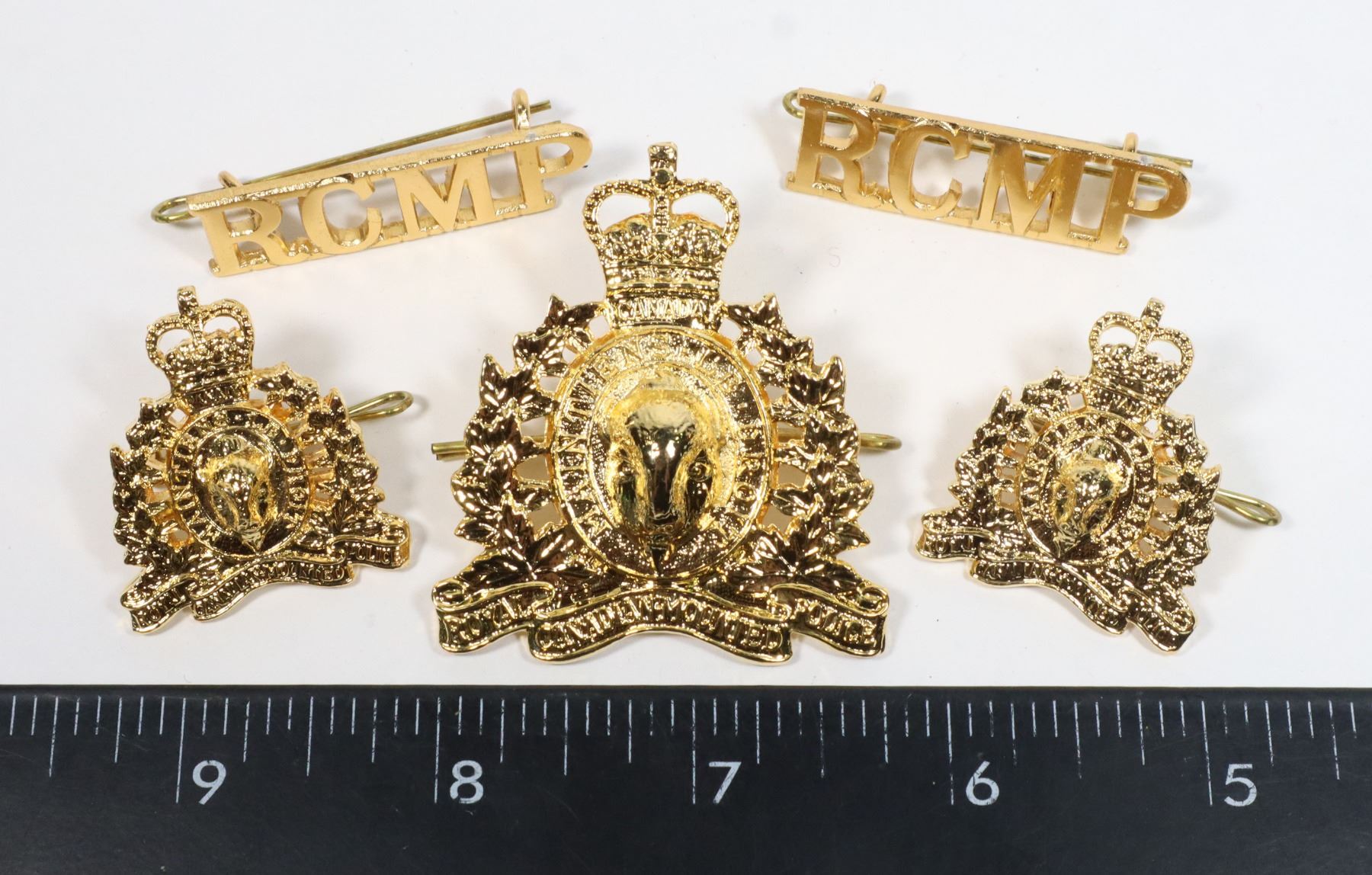 QUEEN ELIZABETH II QEII RCMP CAP BADGE VARIATION W/ COLLARS SHOULDER TITLES BADGE SET