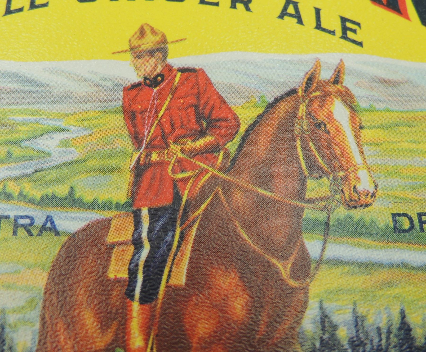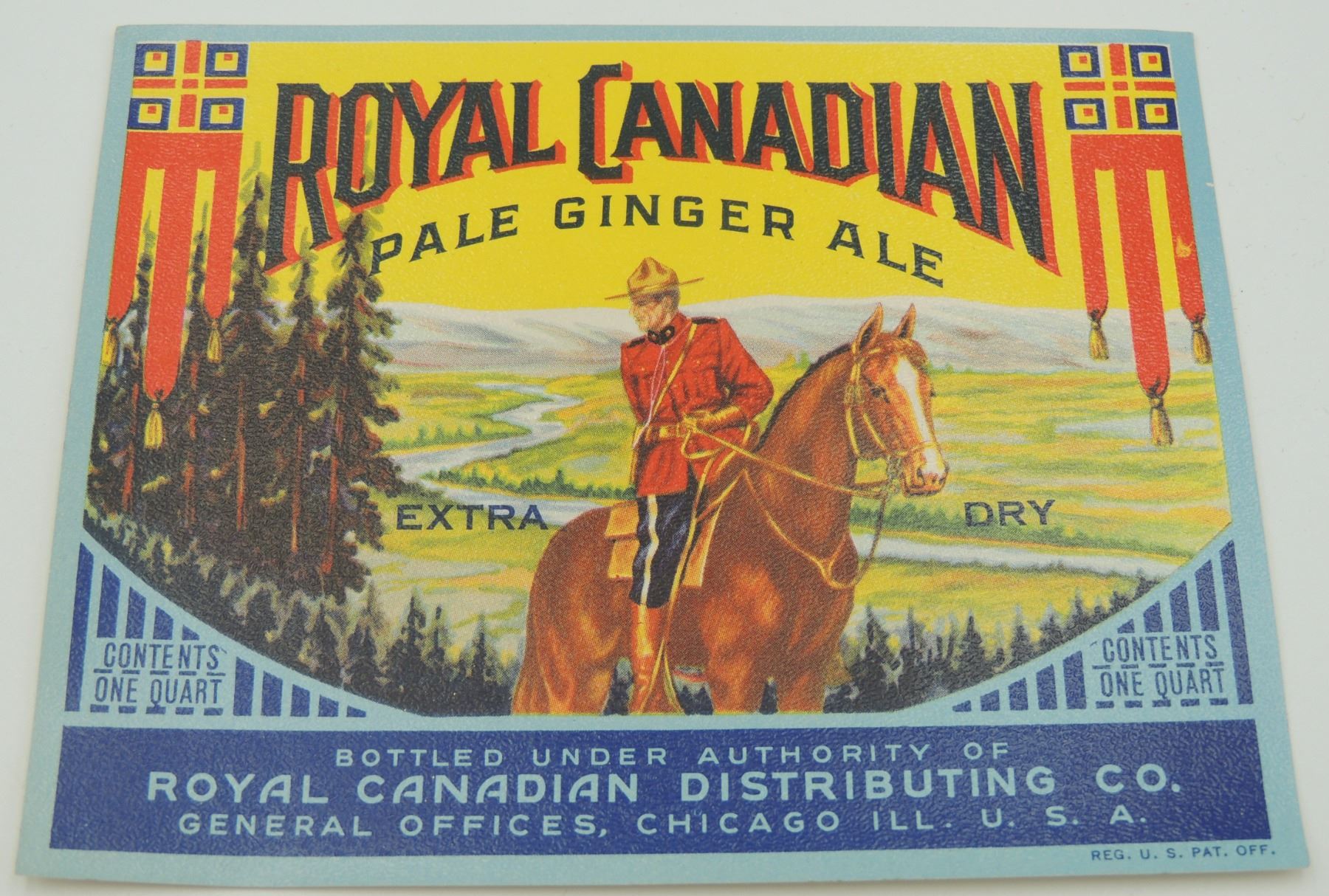 UNUSED BOTTLE LABEL, PRODUCED BY ROYAL CANADIAN DISTRIBUTING CO. GENERAL OFFICES, CHICAGO ILL. U.S.A. FEATURING ROYAL CANADIAN MOUNTED POLICE MOUNTIE