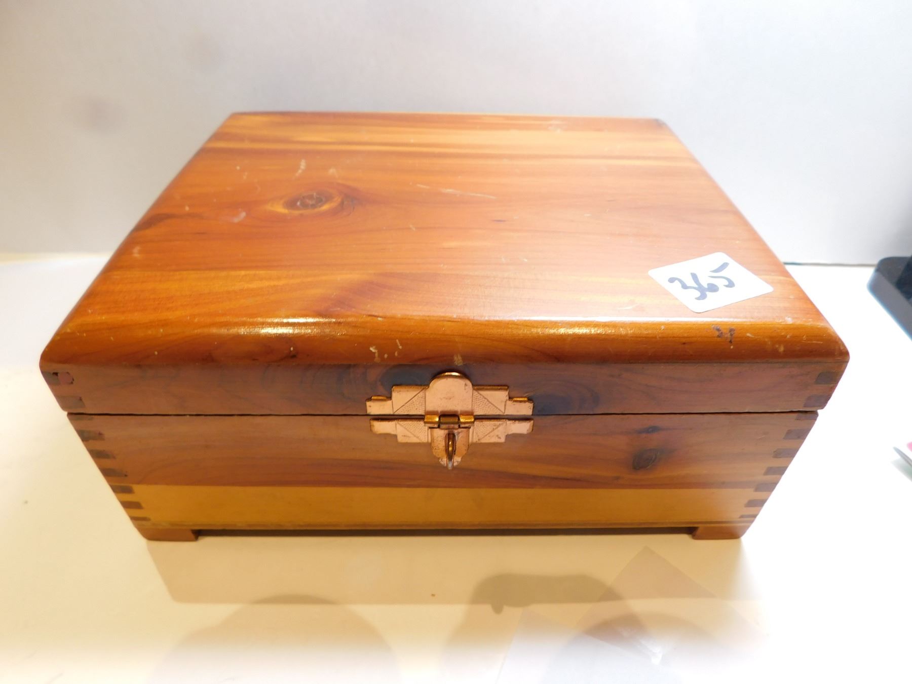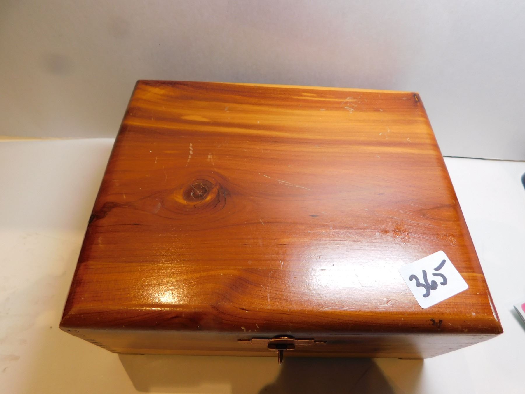 365. TOUNGE AND GROOVE WOODEN BOX WITH CONTENTS