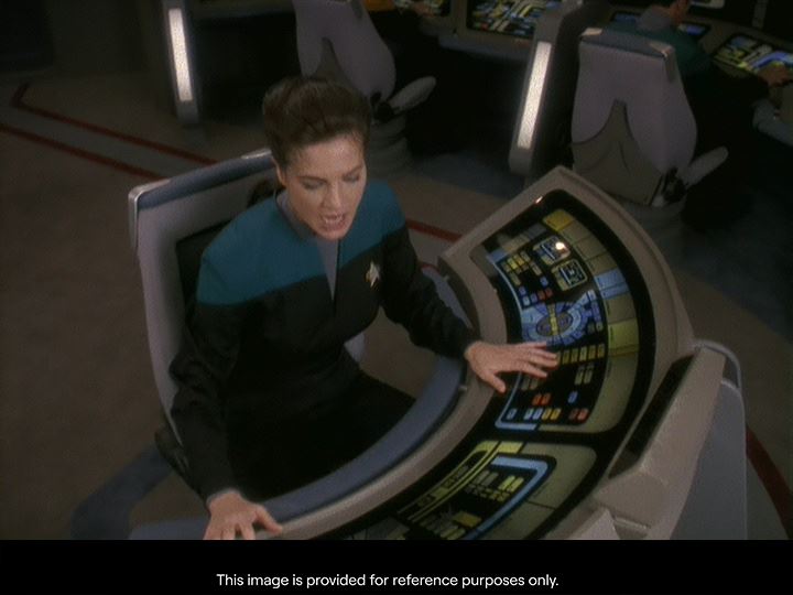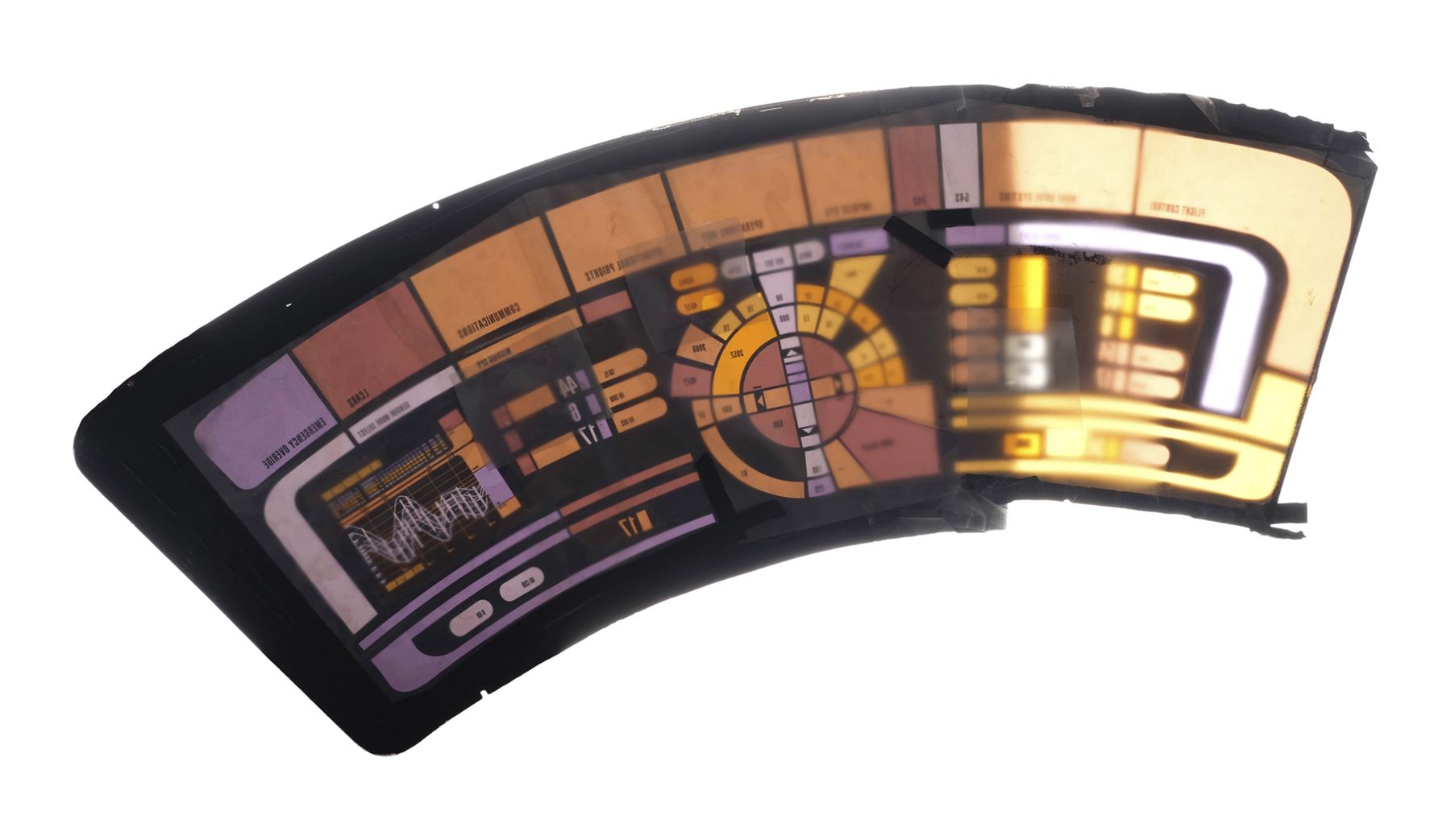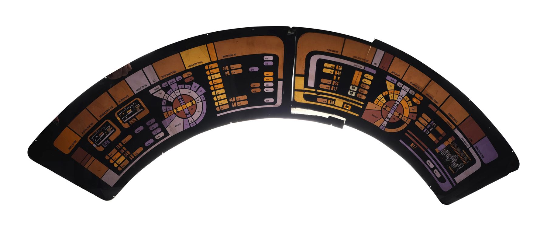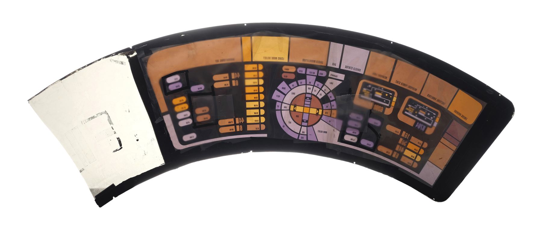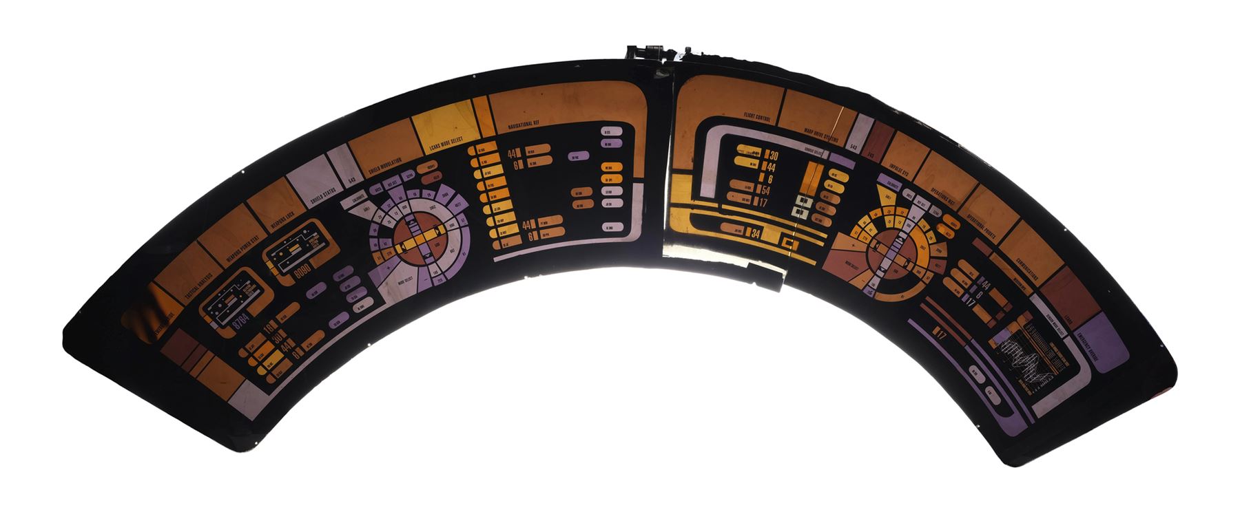 STAR TREK: DEEP SPACE NINE (T.V. SERIES, 1994-1999) - USS Defiant Helm Console LCARS Panel - A USS Defiant helm console LCARS panel from the television series Star Trek: Deep Space Nine. The condensed helm console on the bridge of the Defiant used a LCARS interface to allow a single operator, often Jadzia Dax (Terry Farrell), access to multiple systems including conn and ops.