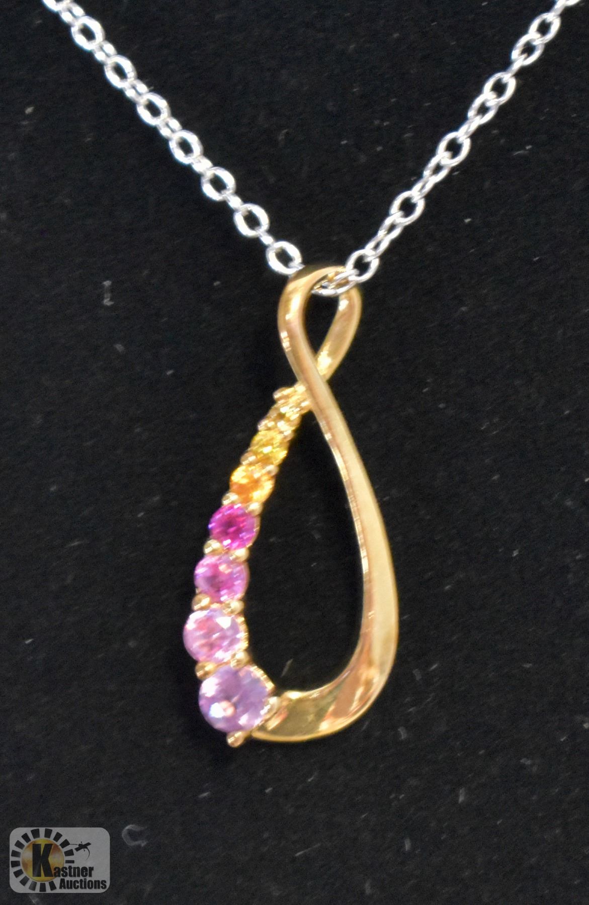 .925 STERLING SILVER/GOLD PLATE/18"/PINK SAPPHIRE