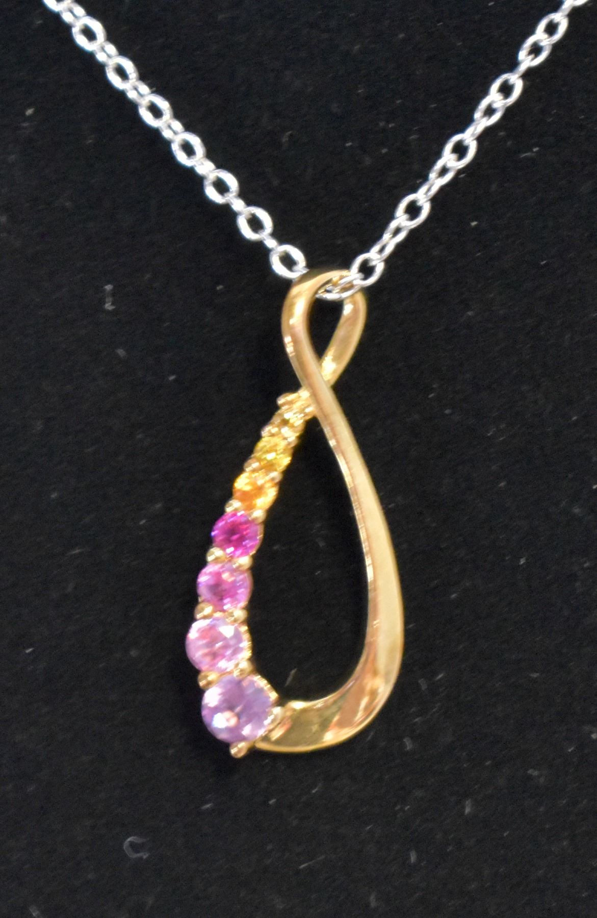 .925 STERLING SILVER/GOLD PLATE/18"/PINK SAPPHIRE