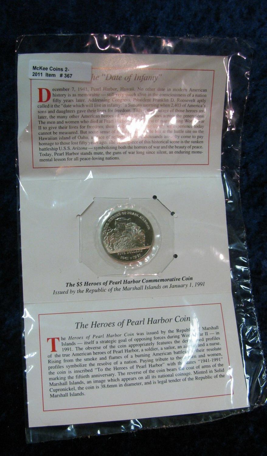 367. 1941-1991 "Pearl Harbor: $5 Commemorative Marshall Islands.
