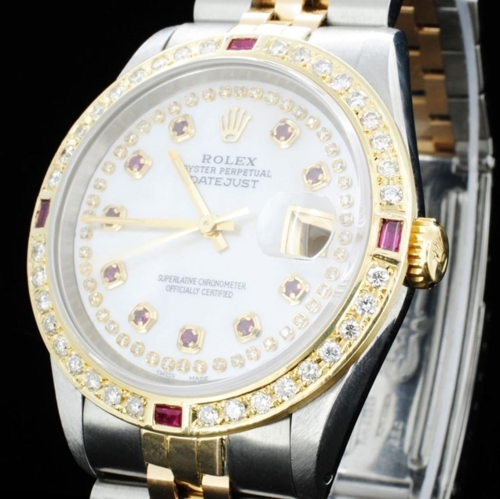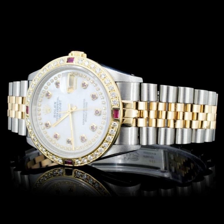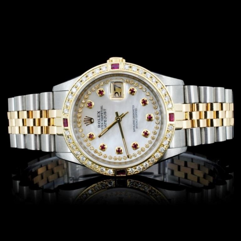 Dial: Custom White Mother of Pearl Dial with Diamond and Ruby markers