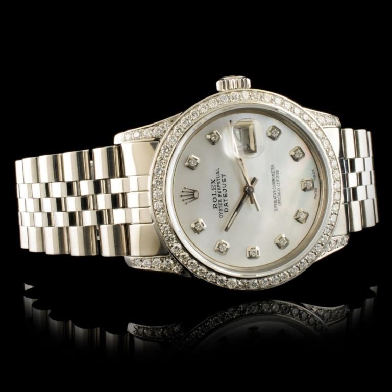 Dial: *Custom White MOP DateJust Jeweled Dial