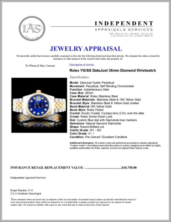 Regarding Appraised Jewelry and Loose Stones - Auctionfarm sends them out to a third party for Retail Replacement Value Appraisals, which are the most common. These types of evaluations are written for insurance needs. This would be the cost to replace the jewelry with an item of equal quality and kind, considered to be the current market price or the replacement value. This type of appraisal is done to protect you in the event of damage or loss of a valuable item. Our appraisals are conducted by independent 3rd Party appraisal firms that utilizes Certified GIA Gemologist. Appraisals should be used for verification of gemstone and/or metal weight, size, and grade only, not actual value. Appraisal value should be considered for insurance purposes only, not actual value, as price varies greatly from retail locations thru out the world. Items should not be purchased with the expectation to resell for appraisal price, or for profit.