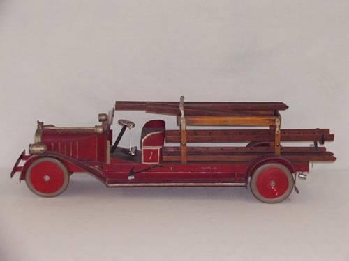 36" SCRATCH BUILT PAINTED TIN and WOODEN MOTORIZED LADDER TRUCK N.F.D. #1 W/ WOODEN LADDERS;