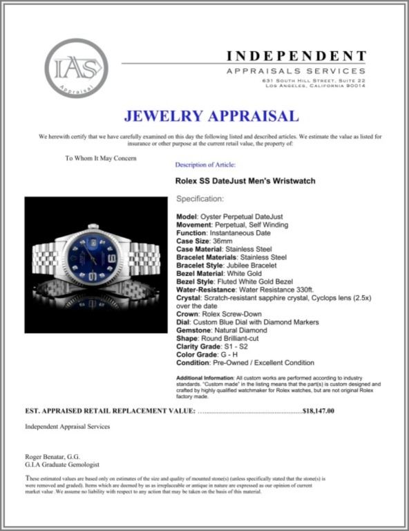 Regarding Appraised Jewelry and Loose Stones - Auctionfarm sends them out to a third party for Retail Replacement Value Appraisals, which are the most common. These types of evaluations are written for insurance needs. This would be the cost to replace the jewelry with an item of equal quality and kind, considered to be the current market price or the replacement value. This type of appraisal is done to protect you in the event of damage or loss of a valuable item. Our appraisals are conducted by independent 3rd Party appraisal firms that utilizes Certified GIA Gemologist. Appraisals should be used for verification of gemstone and/or metal weight, size, and grade only, not actual value. Appraisal value should be considered for insurance purposes only, not actual value, as price varies greatly from retail locations thru out the world. Items should not be purchased with the expectation to resell for appraisal price, or for profit.