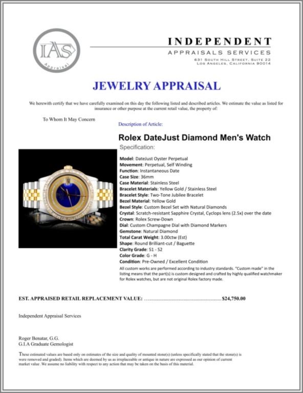 Regarding Appraised Jewelry and Loose Stones - Auctionfarm sends them out to a third party for Retail Replacement Value Appraisals, which are the most common. These types of evaluations are written for insurance needs. This would be the cost to replace the jewelry with an item of equal quality and kind, considered to be the current market price or the replacement value. This type of appraisal is done to protect you in the event of damage or loss of a valuable item. Our appraisals are conducted by independent 3rd Party appraisal firms that utilizes Certified GIA Gemologist. Appraisals should be used for verification of gemstone and/or metal weight, size, and grade only, not actual value. Appraisal value should be considered for insurance purposes only, not actual value, as price varies greatly from retail locations thru out the world. Items should not be purchased with the expectation to resell for appraisal price, or for profit.