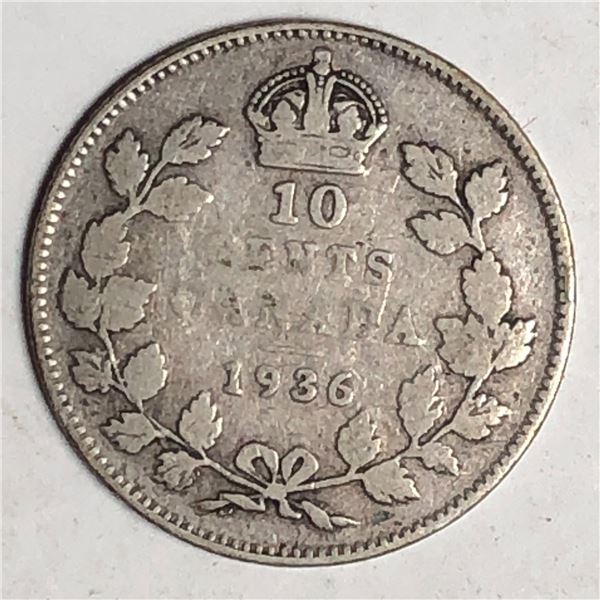 Canadian .10 Cent Dime 1936