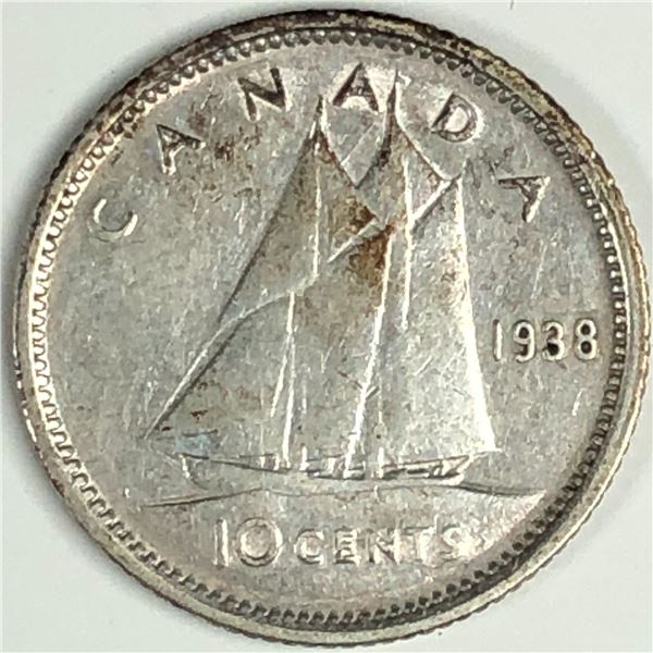Canadian .10 Cent Dime 1938 Error in 9