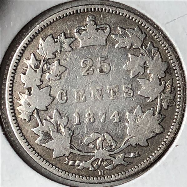 1872 Queen Victoria 25 Cents 7/7 Die Break in A RARE