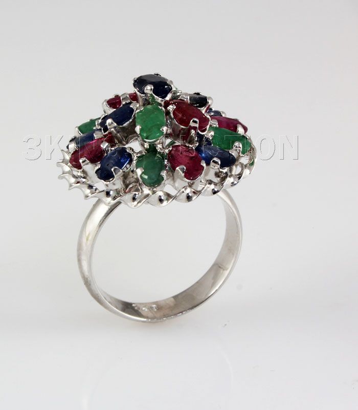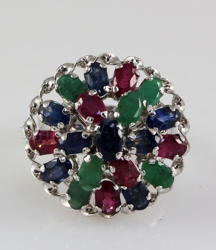 37.00CTW Multi-color Precious Stone Silver Ring **|**|** 6x4mm Vintage Cluster of Multi-color Precious Stone Silver Ring; ctw: 11.52; stone count: 20; gram weight: 5.1; ring size: 7.5 ; MSRP: $1600