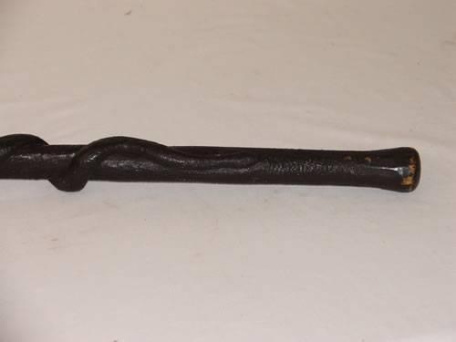 37 1/2" CARVED WOODEN FOLK ART FIRE CANE W/ SNAKE - ENGRAVED WM. J. MILLER FIREMAN STEAMER #2 HENDERSON PORTLAND OREGON 1908 - MINOR WEAR;