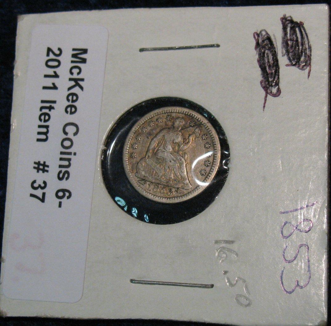 37. 1853 Arrows Seated Liberty Half Dime. VG-8.