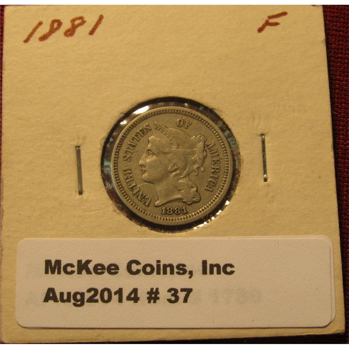 37. 1881 U.S. Three Cent Nickel. F-12.
