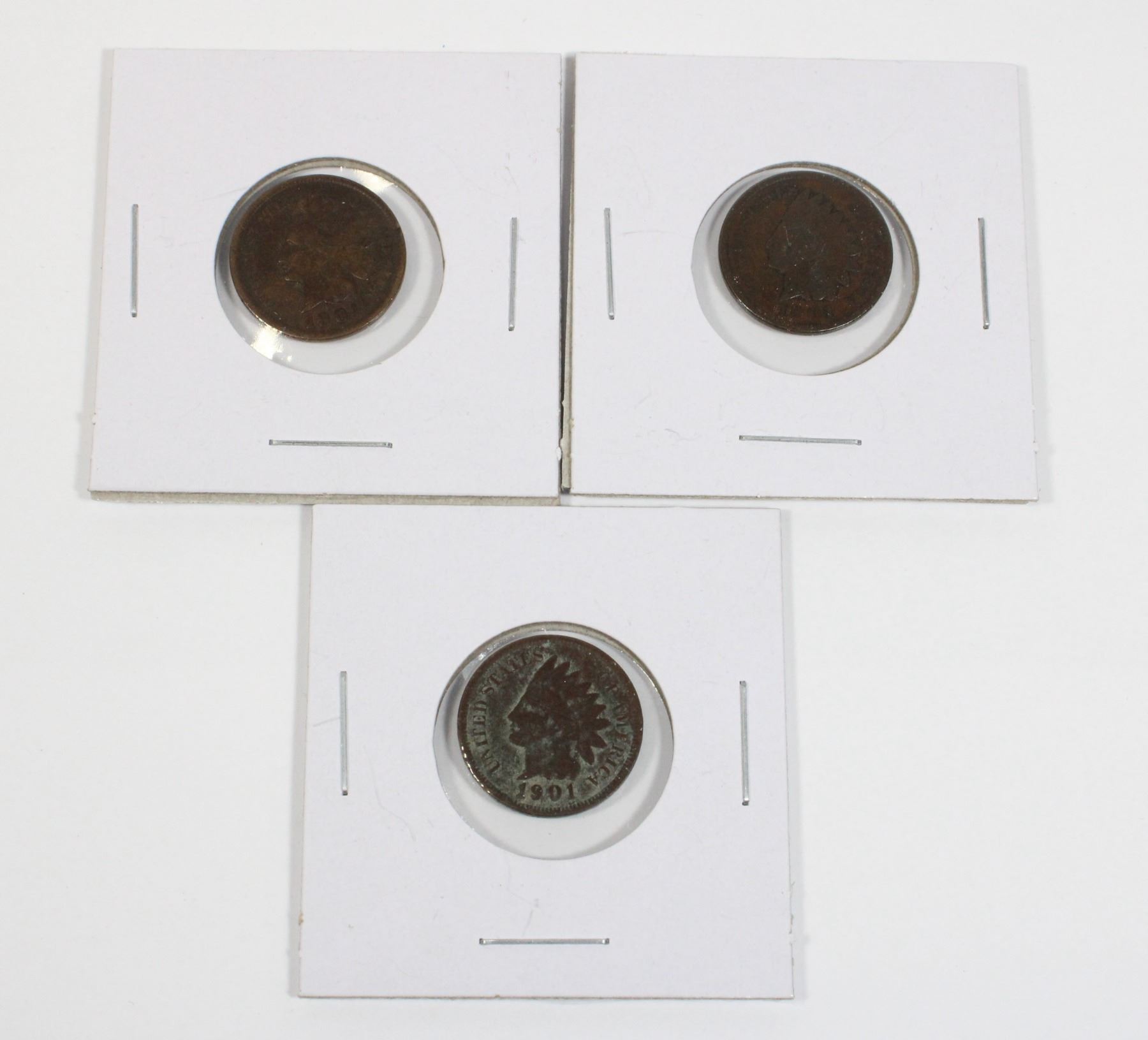#37 1901 UNITED STATES INDIAN HEAD PENNY LOT OF 3