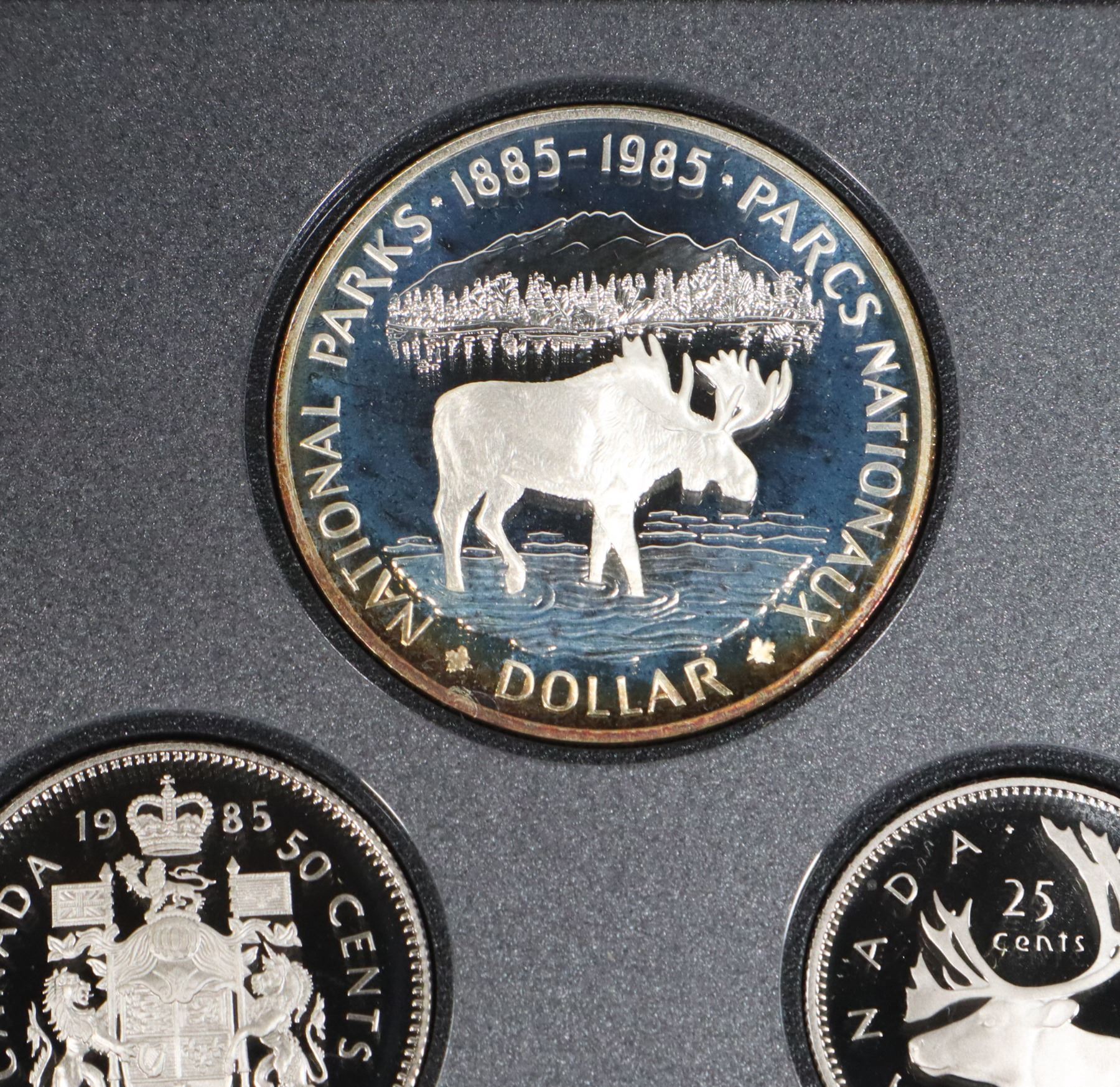 INCLUDES SILVER DOLLAR + VOYAGEUR DOLLAR CANADIAN CURRENCY 7 COIN SET WITH CERTIFICATE OF AUTHENTICITY MOOSE