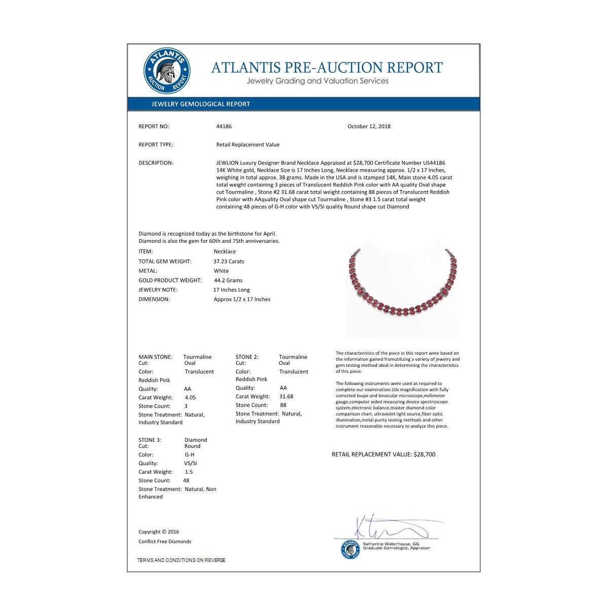 Bidders agree to pay a 19% buyer's premium added to the hammer price of the lot being auctioned. Condition reports and/or Gemological reports in Auction catalog are not guaranteed and may vary in accuracy. It is the responsibility of prospective bidders to inspect the goods. All reports, measurements, opinion of values, age and quality are offered by Oxford Auction but are not guaranteed. Neither the auction house, nor the consignor, is responsible for the accuracy of printed or verbal descriptions or its authenticity. All jewelry items sold by Oxford Auction are evaluated by third party appraisal firms where certified GIA gemologists evaluate the weight, size and grade of gemstone and/or metal to determine the replacement value of the item. Please be advised that all appraisals are done for insurance purposes only and do not determine the actual value of the jewelry on auction. The appraisals are done for the sole purpose of protecting the buyer in the event of damage or loss of purchased jewelry items from Oxford Auction. Oxford Auction is not responsible for the opinions and appraisals of any third party appraisal firms and their experts.