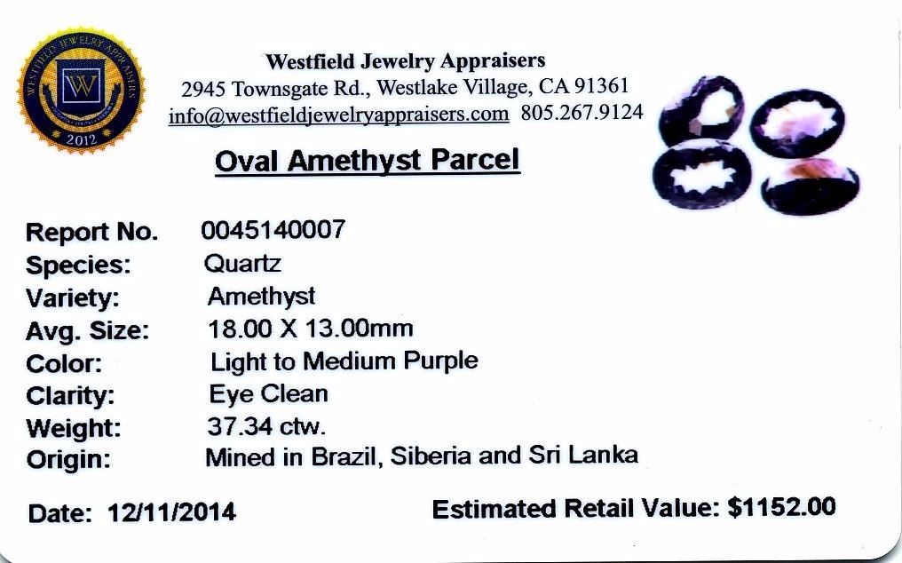 37.34ctw. Oval Amethyst Parcel Westfield Appraised at $1,152.00.