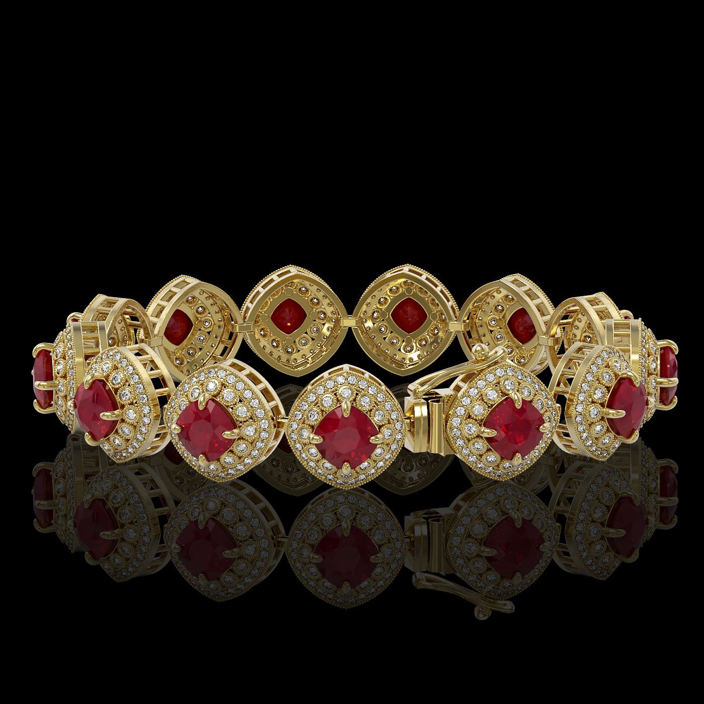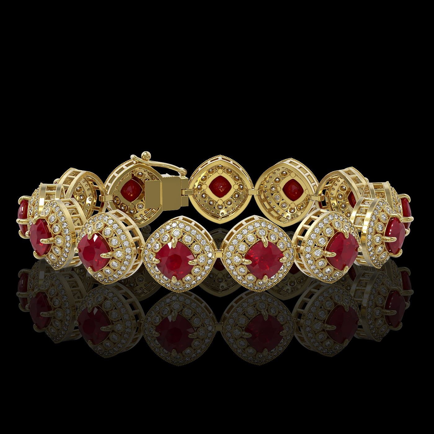 37.35 ctw Certified Ruby & Diamond Victorian Bracelet 14K Yellow Gold