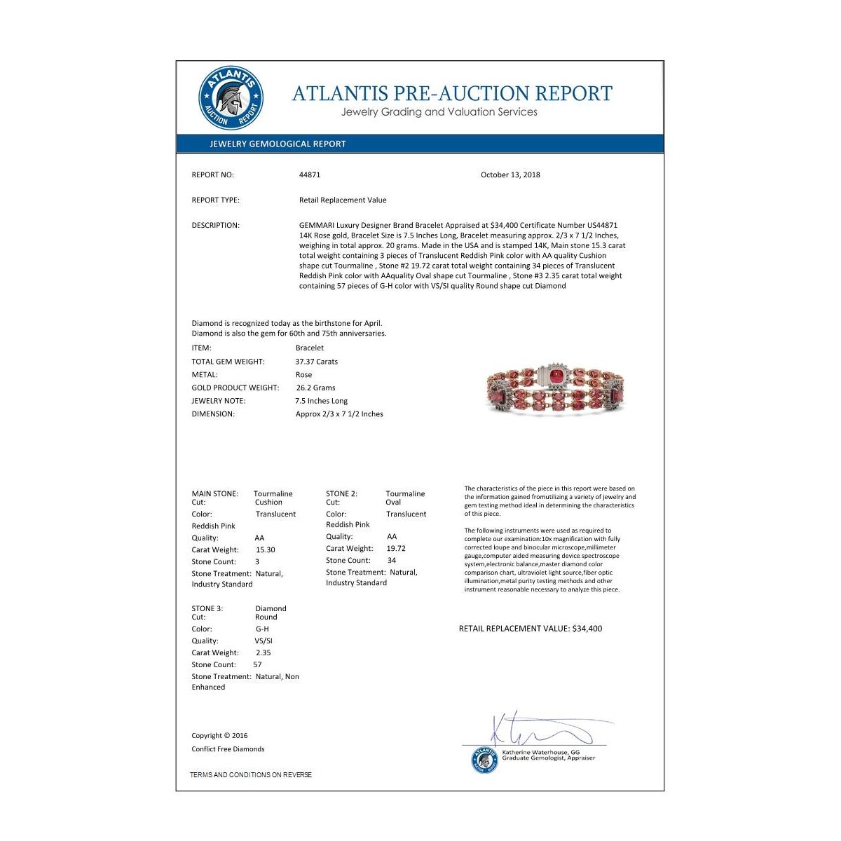 37.37 ctw Tourmaline & Diamond Bracelet 14K Rose Gold