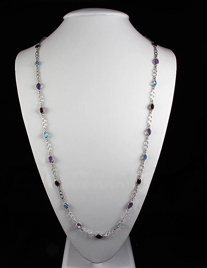 37.55CT Multi Precious Gemstone Silver Bezel Necklace 9 **|**|** 31in. Long Multi Precious Gemstone in Bezel Design Silver Necklace; 26pcs 8x6mm ; MSRP: $2600