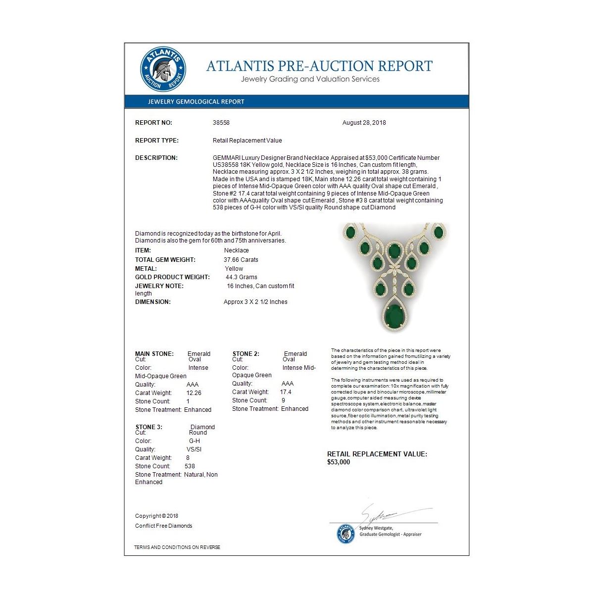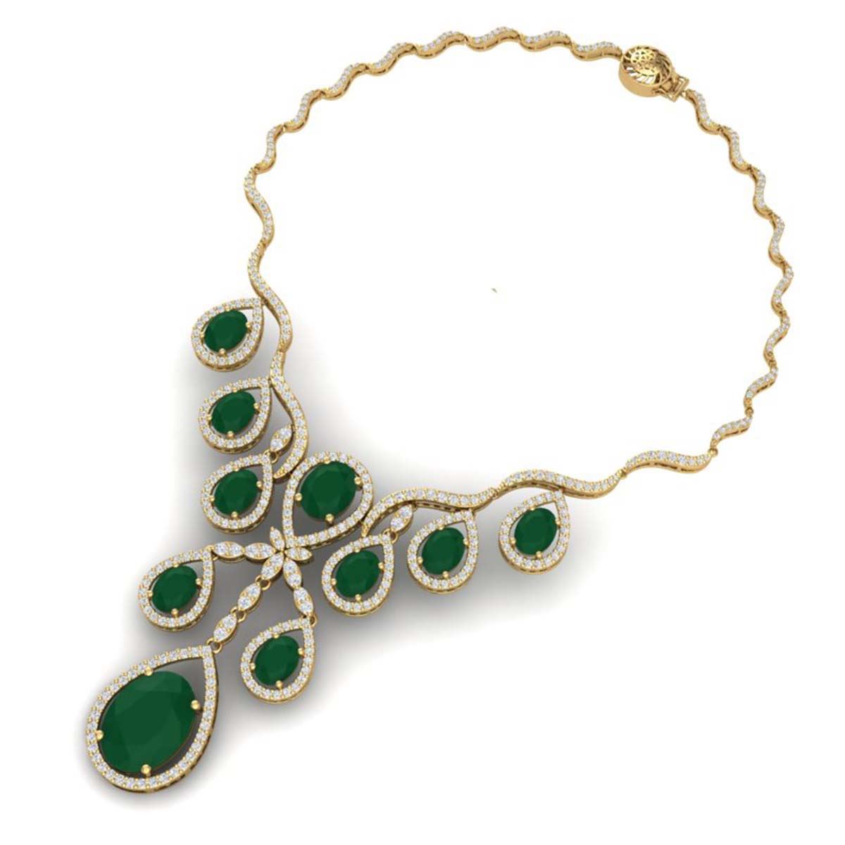 37.66 ctw Emerald & VS Diamond Necklace 18K Yellow Gold