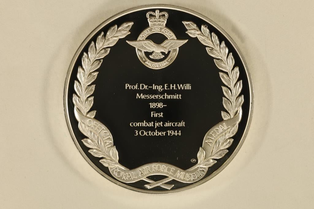 PROF. DR.-ING. E. H. WILLI MESSSERSCHMIDT "FIRST COMBAT JET AIRCRAFT", IN HARD PLASTIC CAPSULE, EDGE NUMBERED
