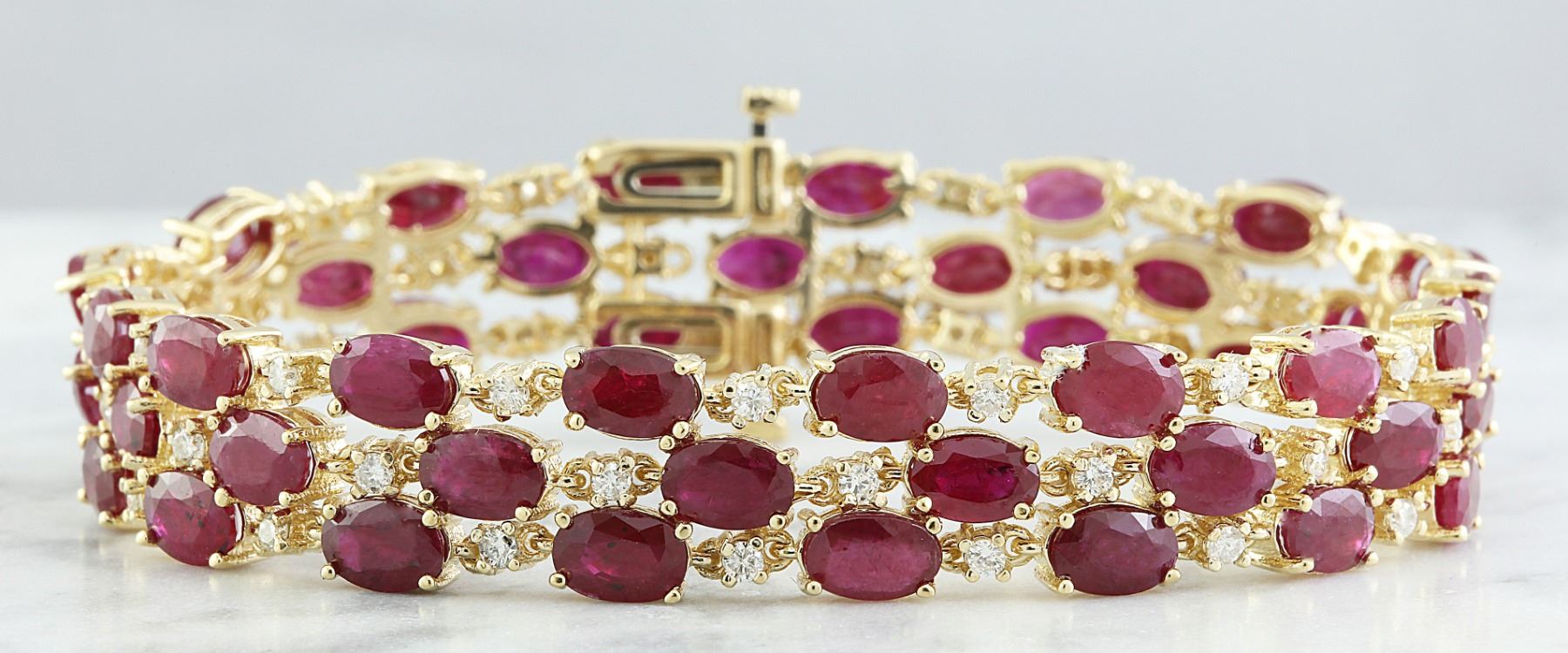 37.96 CTW Ruby 14K Yellow Gold Diamond Bracelet