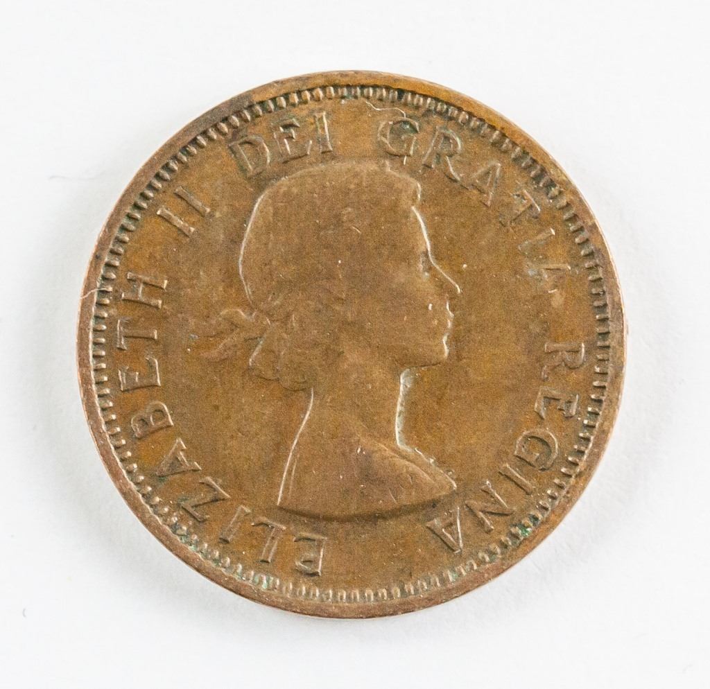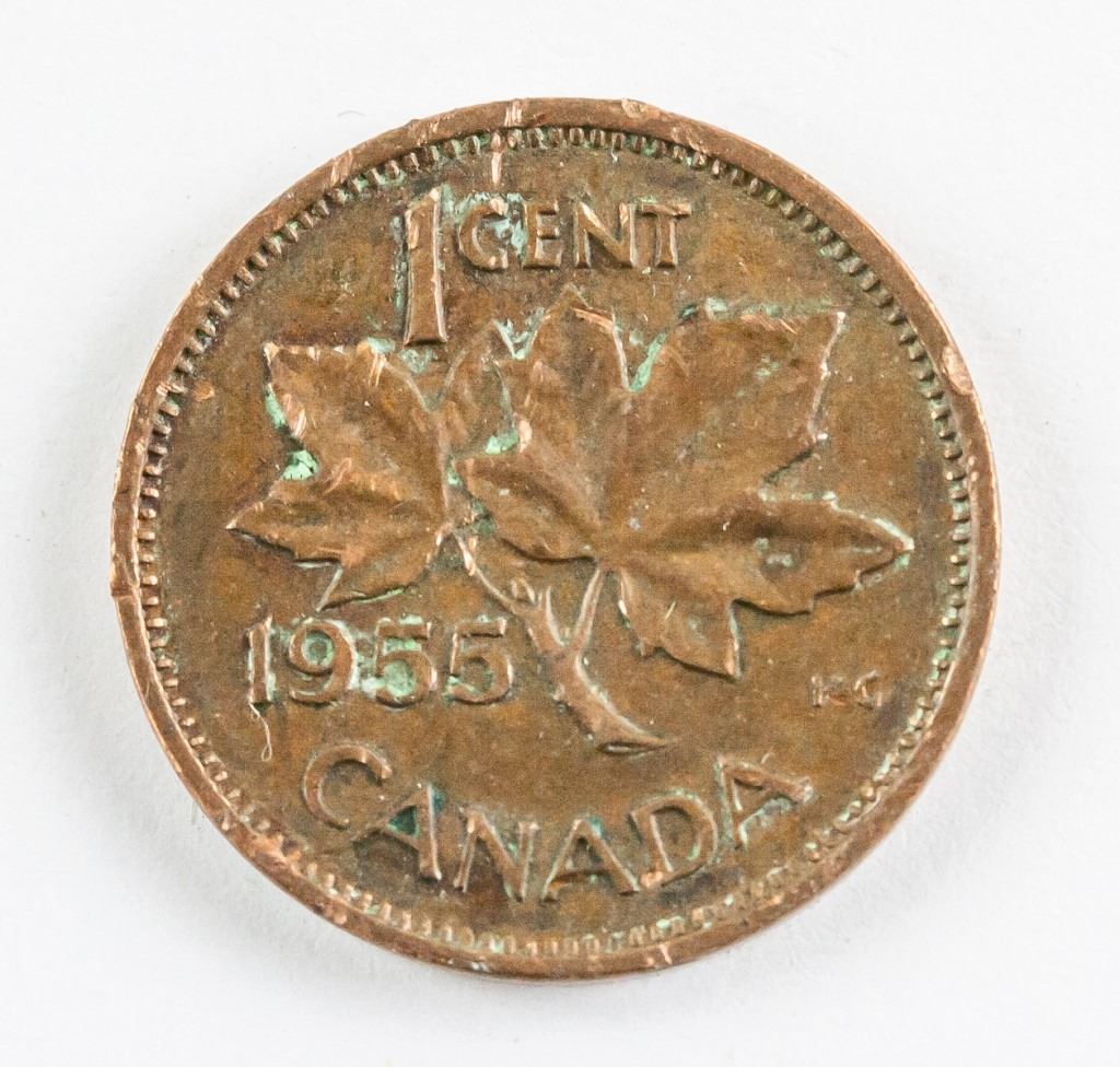 Thirty-seven (37) 1940's to 1960's Canadian and American 1 cent bronze coins. Diameter: 19.1mm, 120 grams total