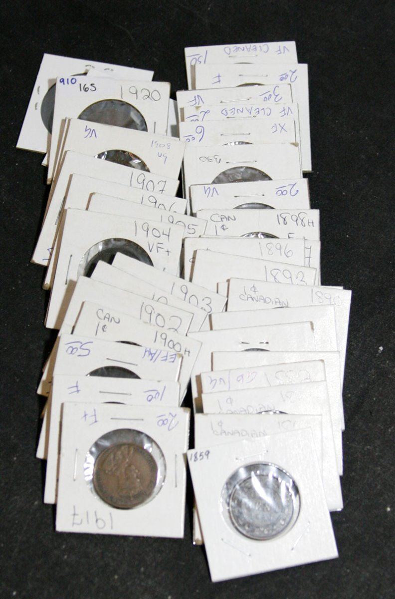 37 Canadian Large One-Cent Coins Ranging From 1859 - 1920 - Assorted Conditions, In 2x2's