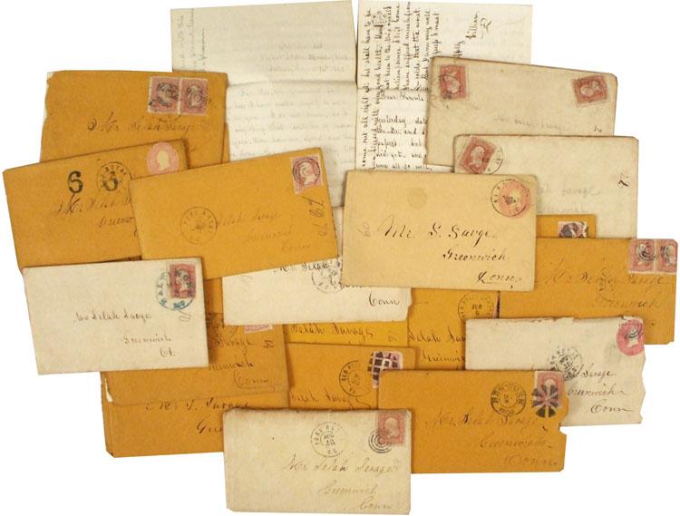 Excellent 37 letter lot written by William L. Savage of the 10th Connecticut Infantry, who was WIA at Deep Bottom Run. Savage's correspondence began in late 1861 and continued through the summer of 1864. On 4 December 1861, ''Everyday we have to drill by the battalion in the morning and in company drill in the afternoon…In the line of battle our co. is the next to the left…” 6 March 1862, ''Yesterday our cavalry brought in thirty cavalry prisoners…we have about one hundred contraband employed in building a neat little breastwork; they have a white band around their hat, with United States Servant printed on it in large letters. It seems to please them very much and they work like good fellows, they have an idea that we came down here to liberate them all, and they claim our protection. Their condition when we came here was miserable indeed, on account of the scarcity of everything and exceedingly high food, but one can see a difference in them already since we came. They will pick up more hard money after we are paid than many of them ever saw before.'' 17 March 1862 after the Battle of New Berne, ''In the engagement we had three wounded, two of them mortally. Sergt. Joseph A. Lombard mortal wound in the head, the ball passed through his eye and lodged in his head. Corporal George Dayton brother of John Dayton, at Greenwich, wound in the side, very severe, but he is still alive…James MacDonald wound in the head, ball entered his head just by his ear, and lodged in the back part of his head passing below his brains, he lived until day before yesterday…'' 1 April 1862, ''There has been quite a sad accident in on of our companies (Co. B) this afternoon as one of the men was cleaning his rifle…it went off and shot one of his comrades, wounding him seriously in the side…The young man who was shot the other day died yesterday morning and was buried yesterday. There was two funerals from our regiment yesterday and one from another near us…'' 16 August 1862, ''we came to the plantation of this Union loving man, with a protection from General Burnside, he lives in a large brick mansion…he said he had lost most all his niggers some sixty head he had lost.'' 17 April 1863, ''We are very anxious here for things about Charleston to come to a crisis in some way. If General Hunter does not know any more about the place he is going to attack; than he does about the expedition he sent to this, or rather, about this island, he will never take it. General Hunter is one in whom his troops do not put any confidence…'' 6 August 1863, ''Our siege has been busy firing now since before light yesterday morning. Evening toward night the firing slackened with the heavy guns but I believe the bombardment is to be kept up all night, and in the morning an assault is to be made on the fort by General Stevenson's brigade. God grant it may be successful…'' 27 September 1863, ''One man was cleaning his gun, he put a cap on and snapped it…the gun exploded and passing out of his tent crossed the street…and into…one of the men, in both legs, about six inches above the ankle. One leg will have to be amputated, very bad wounds. The wounded man belongs in Co. E, the other in Company G. The man was placed under arrest immediately…'' 9 October 1863, ''We were up in Gregg over most forward battery. Quite near to Sumter and Moultrie and the batteries on Sullivan and James Island…the James Island batteries gave particular attention to Battery Wagner (more properly Fort) it is very dangerous work on that end of the island the range is so short, one scarcely has time to get under cover before the shot is there, there was some very narrow escapes. But only one man was hurt and he was killed, nearly cut in two by a piece of shell…'' 22 October 1863, ''George Jariman died last night, was buried this afternoon he is a brother to the one that was killed in the trenches in the siege of Wagner…The Tenth Regiment is not what it was two years ago, nor one year, nor ever will be again…'' 26 May 1864, ''we have some slight reverses from time to time but they are all more than counterbalanced by the successes of the two great armies under Grant and Sherman, those two armies continuing their successful career, will soon bring the war to a close whatever may happen elsewhere…'' 12 June 1864, ''You wish to know what I think of the Cleveland Convention? I do not think much of it, or that it is any honor to the men composing, as for General Fremont, I think as one writer says of his acceptance, that it is his last blow on his trumpet…'' 6 August 1864, ''Last evening about sunset, we heard a tremendous artillery firing in the direction of Petersburg. The most artillery firing we have heard from them, at any time since we have been here. It very much resembled the firing we heard at the battle of Cold Harbor…'' Most letters accompanied by envelopes. An outstanding Civil War archive.