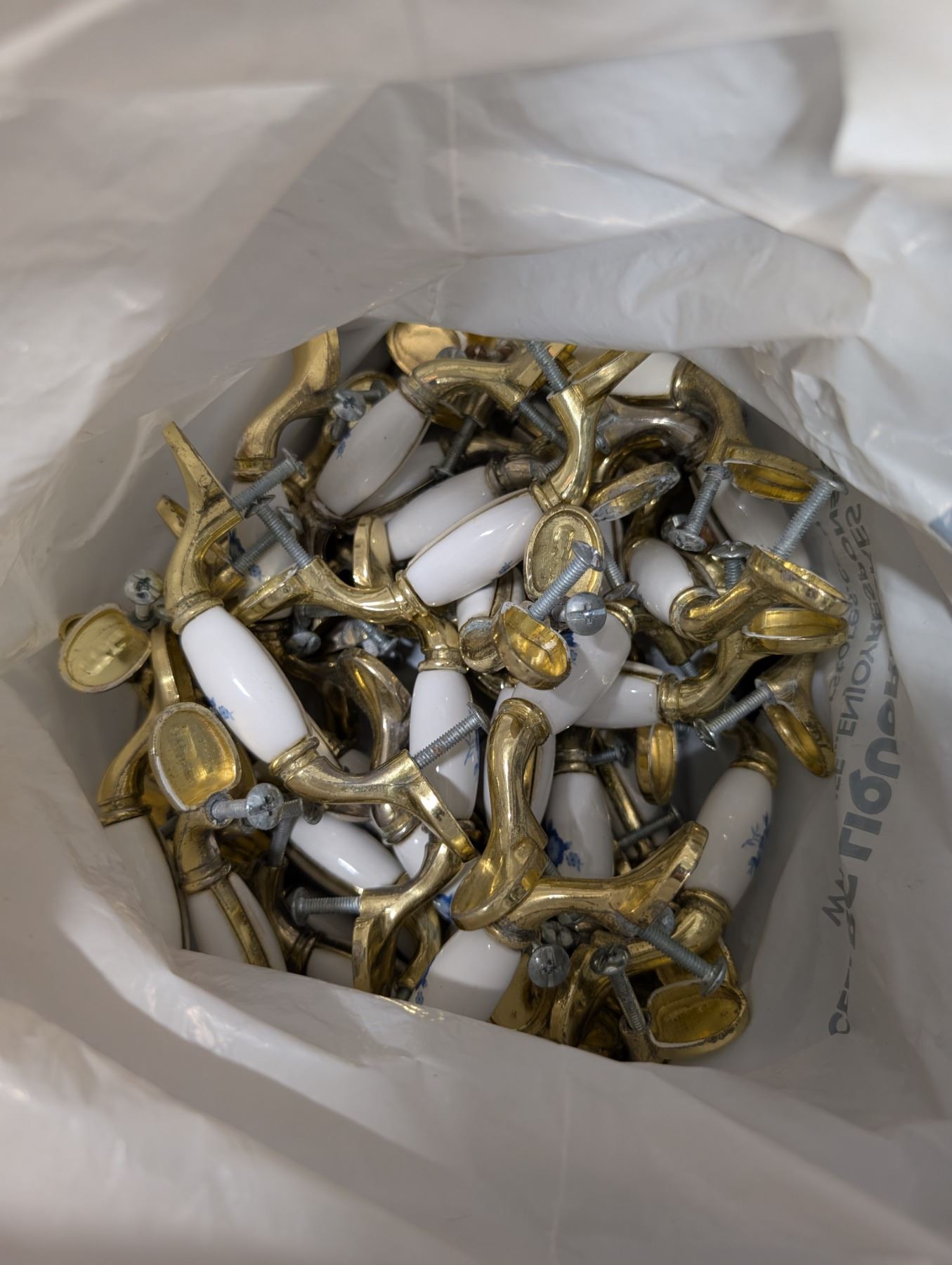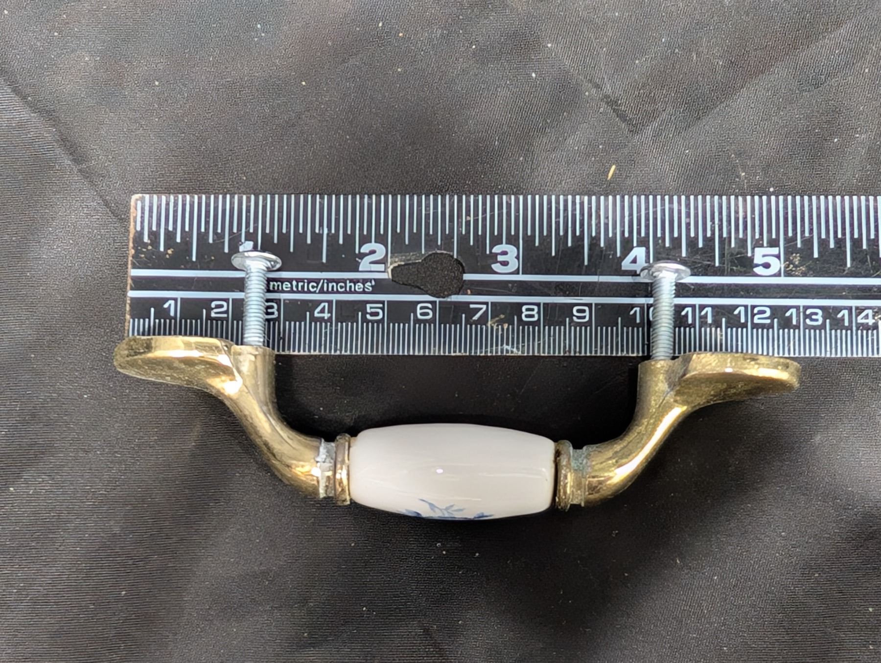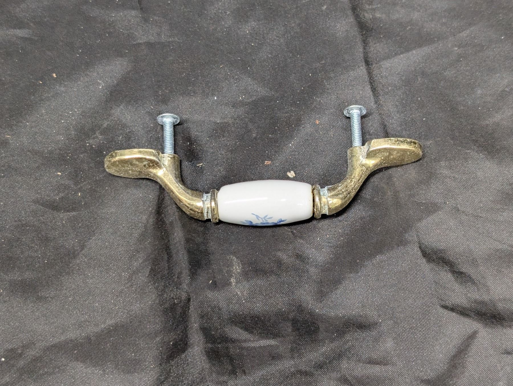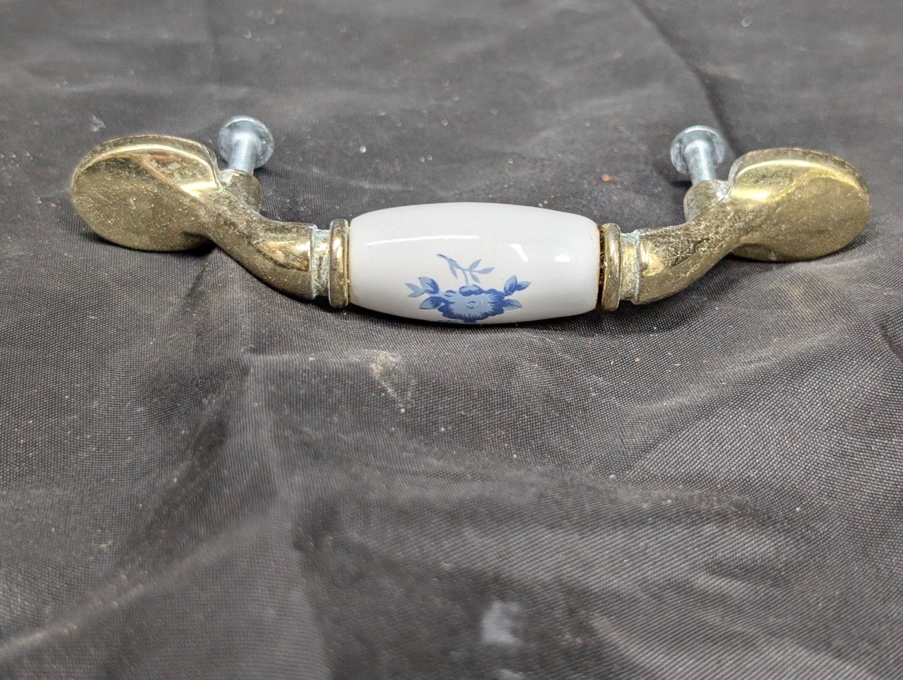 (37) Gold Coloured with floral design small Dresser handles (Good Condition)