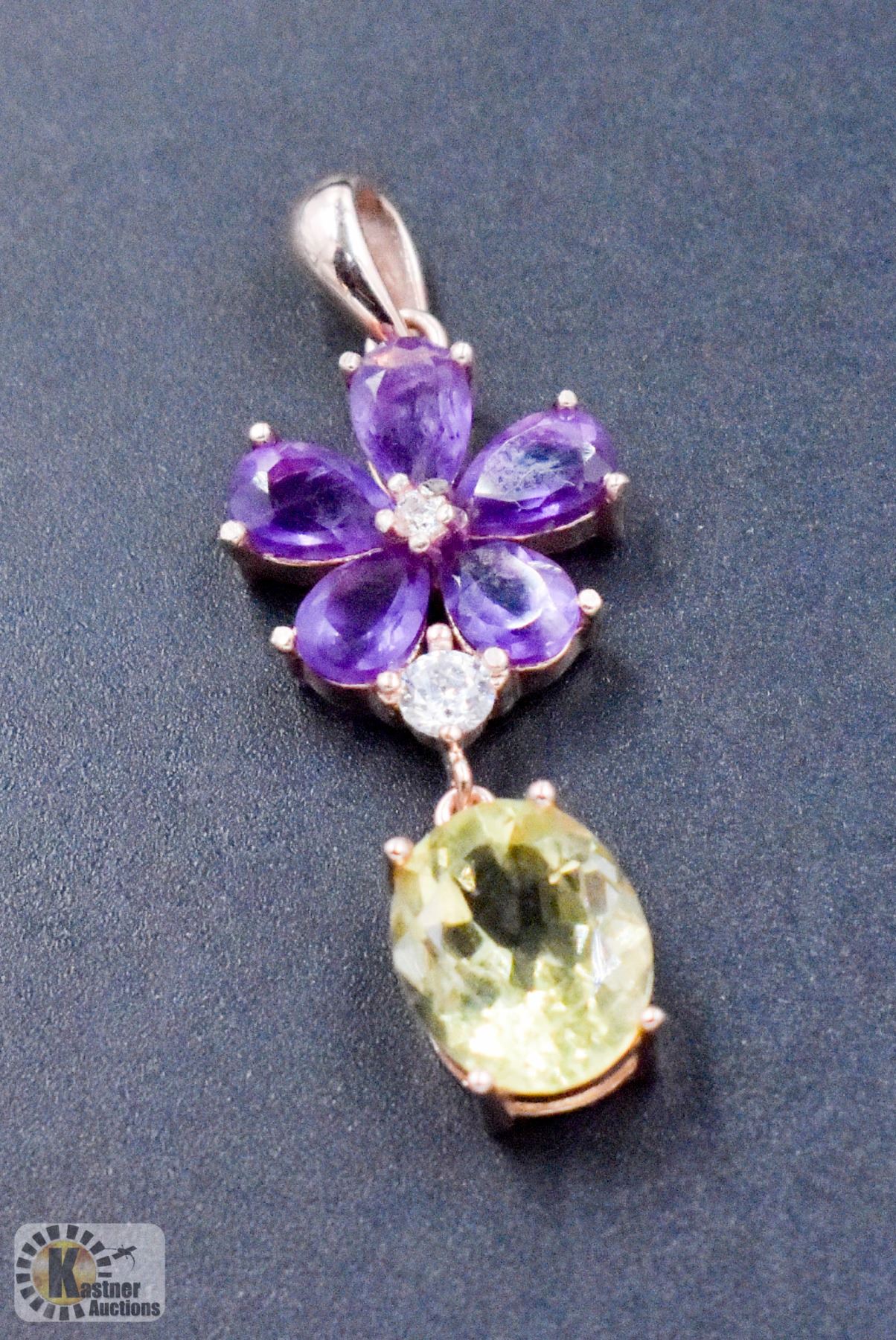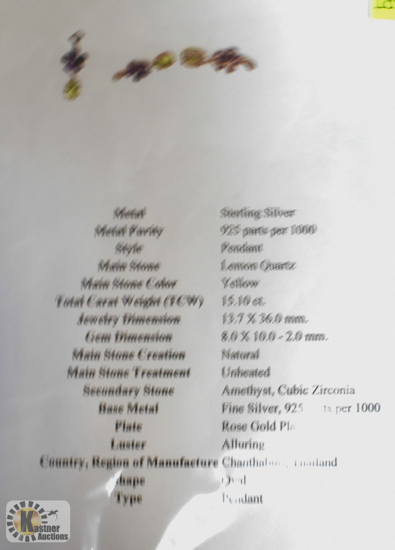 #37-NATURAL LEMON QUARTZ ,AMETHYST,CZ PENDANT