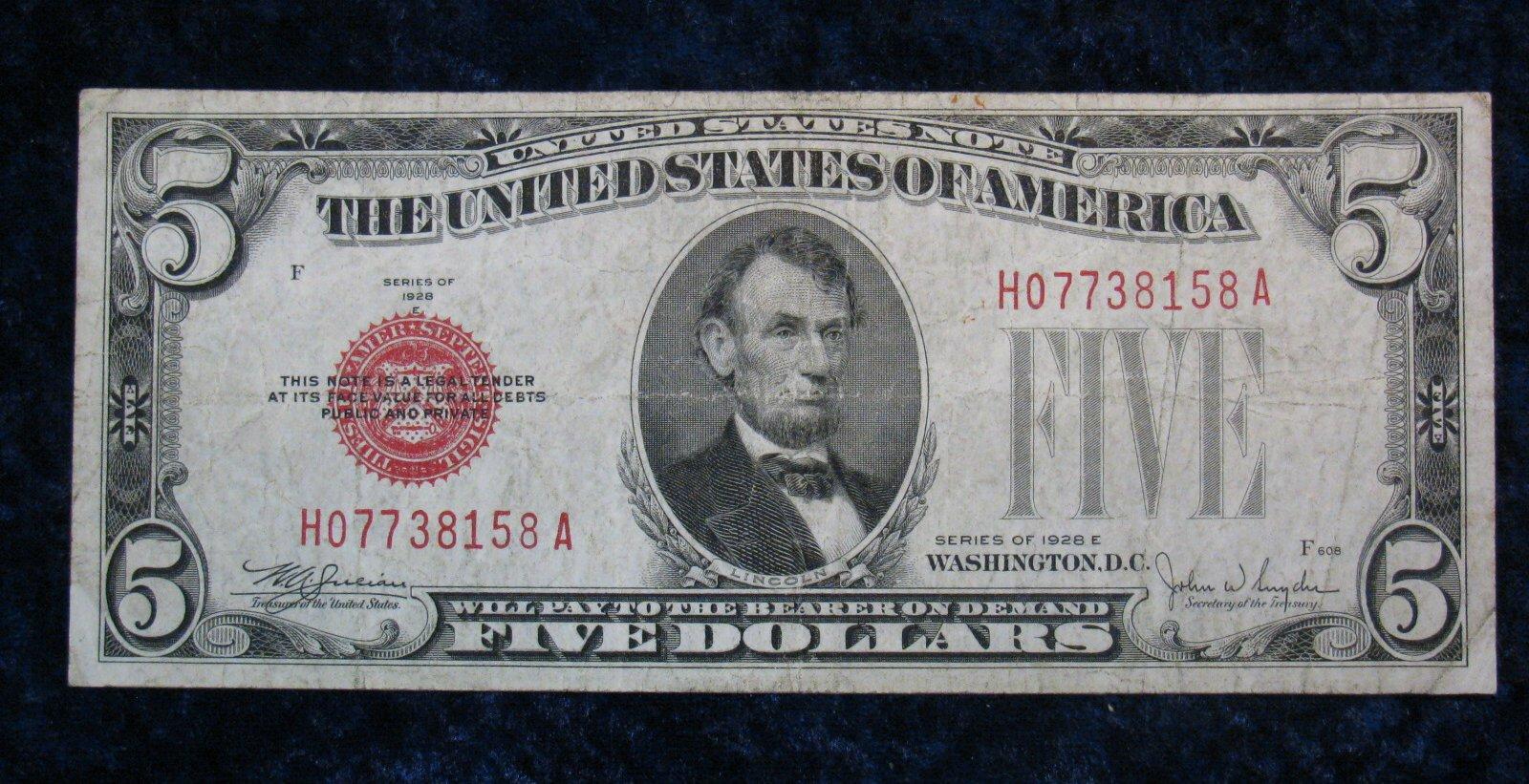 37. Series 1928E $5 U.S. Note. "Red seal" VG.