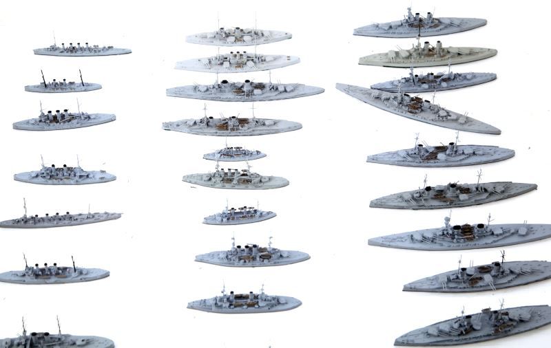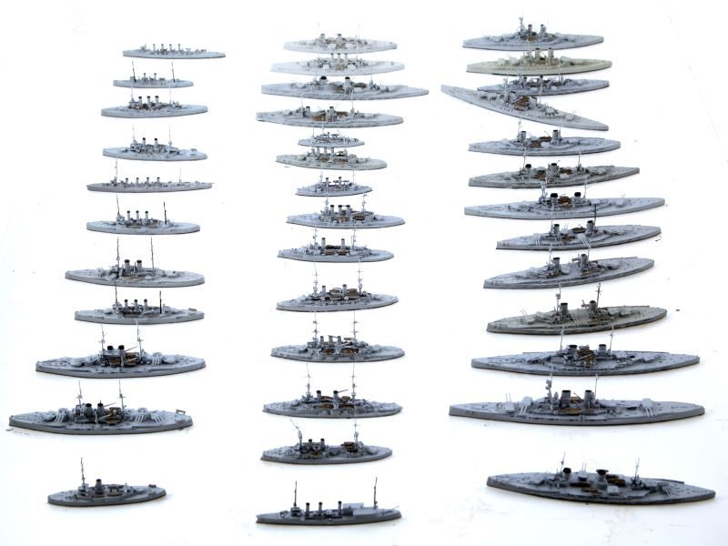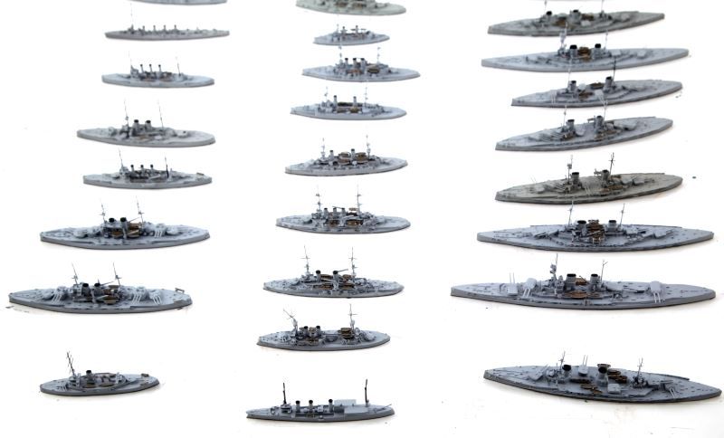 37 water line ID models of WWI-era German and Astro-Hungarian warships. Ships are as follows: Admiral Spaun, Aspern, Baden, Bayern, Beowulf, Blucher, Derfflinger, Deutschland, Erzherzog Karl, Friedrich Der Grosse, Goeben, Goland, Habsburg, Hagen, Hessen, Hindenburg, Kaiser, Kaiser Karl VI, Kaiser Karl Der Grosse, Kaiser Barbarossa, Konig, Kronprinz, Lutzow, Mackensen, Moltke, Nassau, Oldenburg, Radetzky, Sankt Georg, Seydlitz, Schlesien, Stuttgart, Szent Istvan, Viribus Unitis, Von Der Tann, Wettin, Worth, and Wien. Alphabetized card catalog of launch date, class, specifications, and service history of each ship.